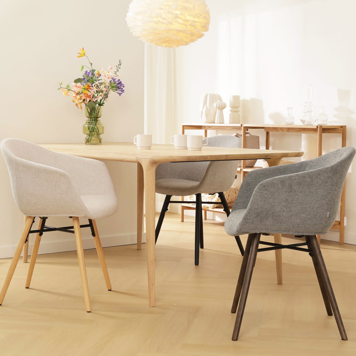 - De combinatie van hout en stof zorgt voor een warme en uitnodigende uitstraling