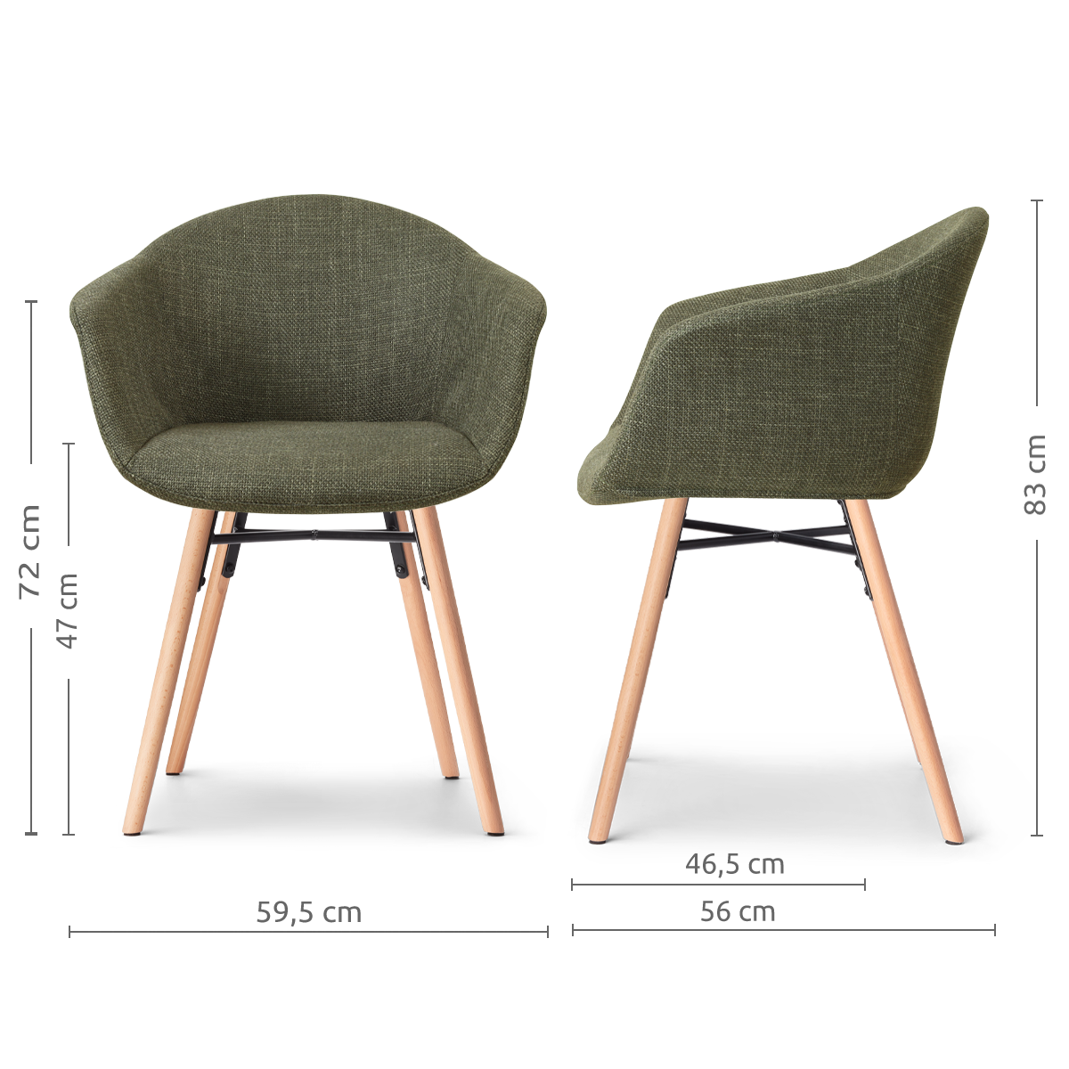 De Nena-Otis in donker groen geeft je eetkamer direct een luxe en serene sfeer. De rijke stof in combinatie met de oplopende armleuningen biedt een comfortabele zitervaring en een chique uitstraling. De naturel houten poten zorgen voor balans en een warme afwerking, waardoor deze stoel perfect past in een Japandi of modern interieur.
