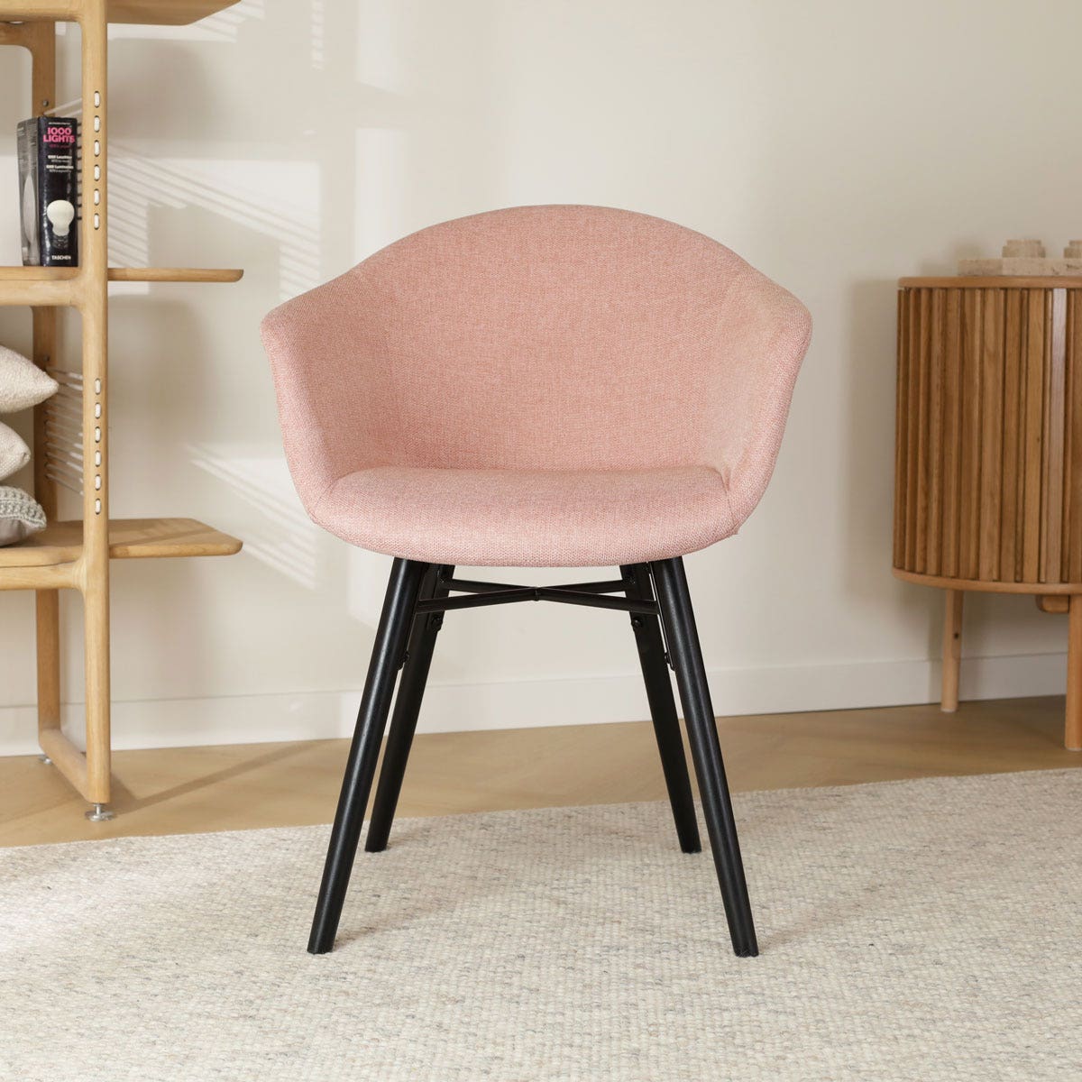 Deze eetkamerstoel is ontworpen met oog voor detail en combineert functionaliteit en stijl op perfecte wijze. De stoel heeft een onderstel van vier beukenhouten poten met een zwarte metalen kruisverbinding. Dit zwarte houten onderstel zorgt voor een warme uitstraling in de eethoek en draagt tevens bij aan de stabiliteit en duurzaamheid van de stoel. De zitting is ontworpen met ergonomische vormen en aflopende armleuningen om het lichaam optimaal te ondersteunen en een hoog zitcomfort te bieden. De kuipzitting is bekleed met hoogwaardige stof voor een zachte zitervaring en is in zes verschillende kleuren verkrijgbaar. Is de Otis zitting met armleuningen precies wat je zoekt maar heb je liever een ander onderstel? Dat kan met de uitgebreide mix en match collectie van Nolon!