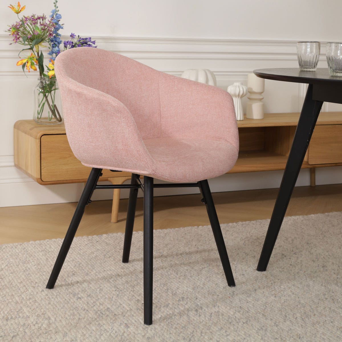 De Nena-Otis eetkamerstoel met houten poten en een gestoffeerde zitting is de blikvanger rondom je eettafel.