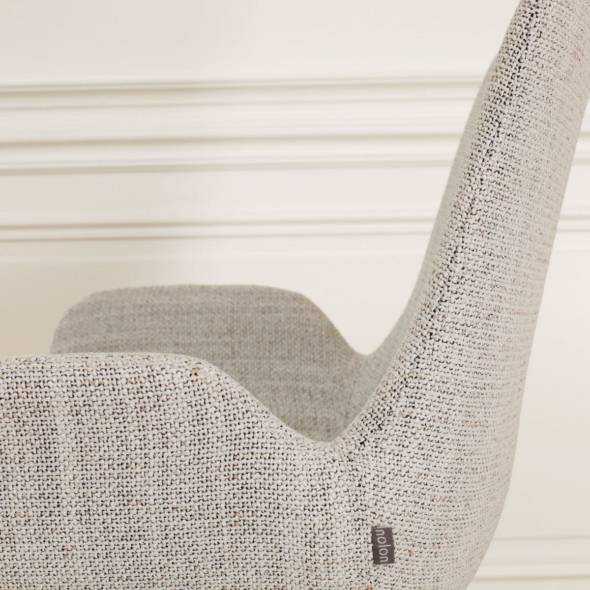 Geef jouw bartafel een elegante en moderne uitstraling met de Nino-Eef stoffen barkruk met armleuningen van Nolon.