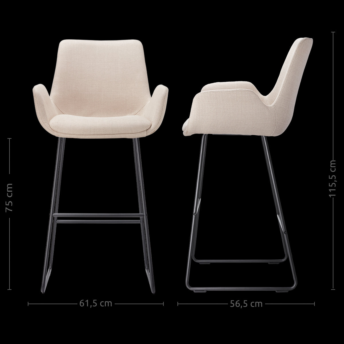 De barkruk is ontworpen met zowel comfort als stijl in gedachten. Het metalen frame van de barkruk heeft een moderne en minimalistische uitstraling, en zorgt voor stevigheid en stabiliteit. De zitting is bekleed met luxe stof in de kleur beige, of met bouclé stof in de kleuren beige of taupe. Dankzij deze stoffen zitting heeft de barkruk een chique uitstraling en creëer je een sfeervolle plek om te eten. Met een zithoogte van 75 centimeter is deze kruk geschikt om aan een bar of hoge eettafel te gebruiken. Wil je de kruk aan een kookeiland gebruiken? Dan is de Nino-Eef met een zithoogte van 65 cm beter geschikt voor jou.