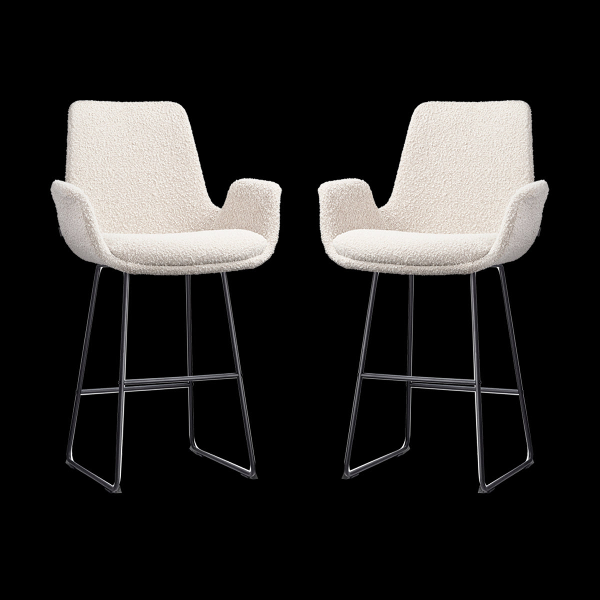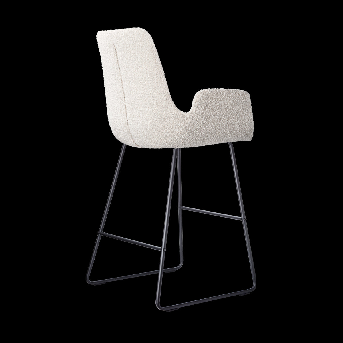 Deze barkruk is ontworpen met zowel functionaliteit als esthetiek in gedachten. Het slanke metalen onderstel zorgt voor een stabiele zit en laat de barkruk tegelijkertijd modern en luchtig ogen. De comfortabele zitting heeft een stevige rugleuning en is verkrijgbaar met luxe stoffen bekleding of bouclé stof. Hiermee is de Nino-Eef een sfeervolle toevoeging aan de keuken. Naast de rugleuning is de Nino-Eef bovendien ontworpen met armleuningen voor extra ondersteuning. Deze armleuningen zijn iets lager dan standaard, wat niet ten koste gaat van het zitcomfort maar er wel voor zorgt dat de kruk beter onder het keukenblad past. De voetsteun op het metalen frame maakt de barkruk vervolgens helemaal af. Maak een keuze uit de verschillende materialen en kleuren van de zitting en geniet van ultieme stijl en comfort aan je kookeiland.