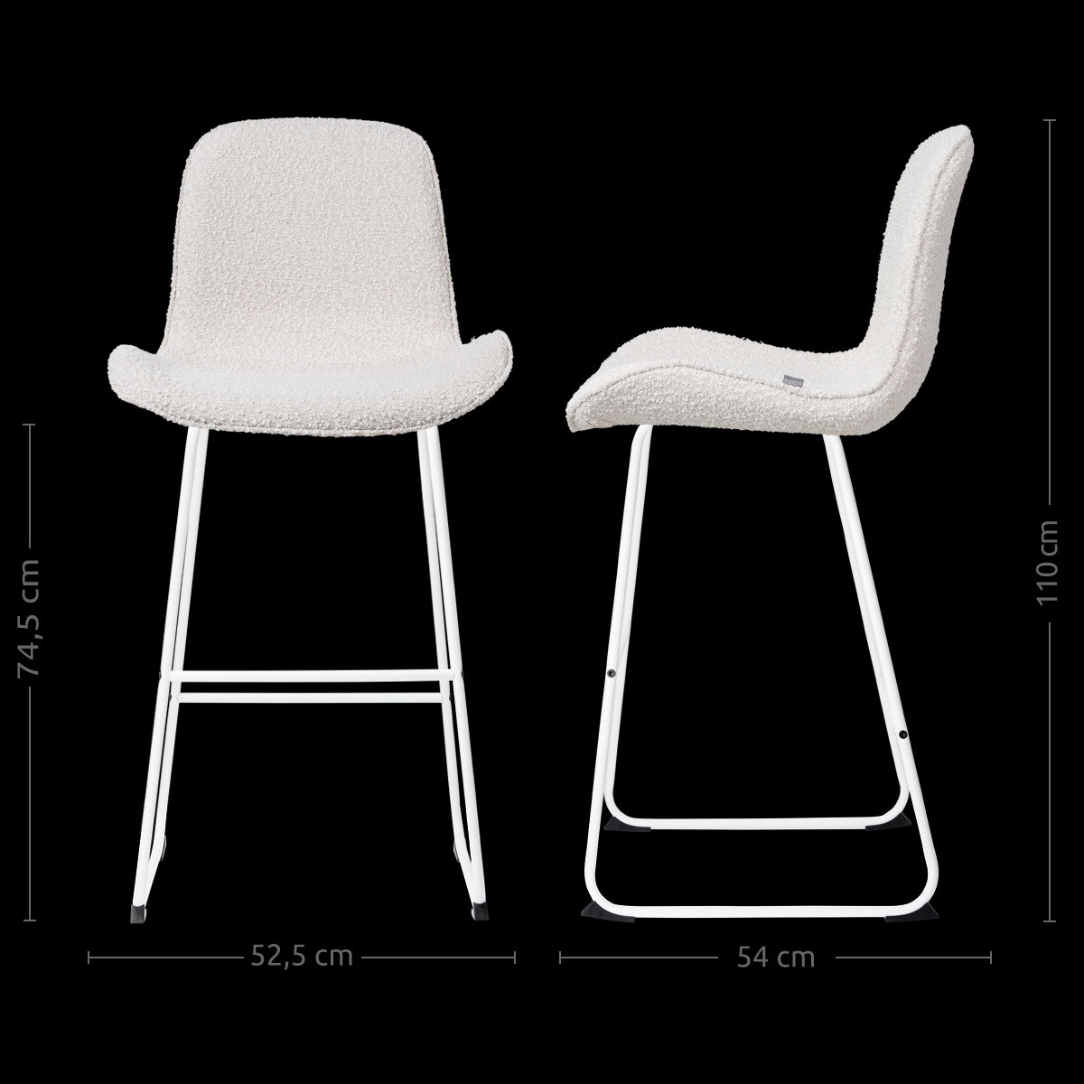 Deze moderne barkruk combineert namelijk een strak metalen onderstel met een zachte gestoffeerde zitting, en is tegelijkertijd ook nog eens erg comfortabel. De zitting van deze kruk is ontworpen met subtiele rondingen en een gevleugeld zitvlak om ervoor te zorgen dat je urenlang comfortabel kan zitten. De zachte bekleding draagt bij aan het zitcomfort en zorgt bovendien voor een warme sfeer in de eethoek. Met diverse kleuren en materialen om uit te kiezen kan je deze barkruk helemaal aan jouw interieur aanpassen. Kies uit het witte of zwarte onderstel en combineer deze met de zitting in bijvoorbeeld bouclé of teddystof voor een ware blikvanger in huis. Met een zithoogte van 74,5 cm is deze barkruk geschikt voor aan een hoge eettafel of bar. Heb je een lager model nodig? De Nino-Fé is ook verkrijgbaar in een kookeiland variant.