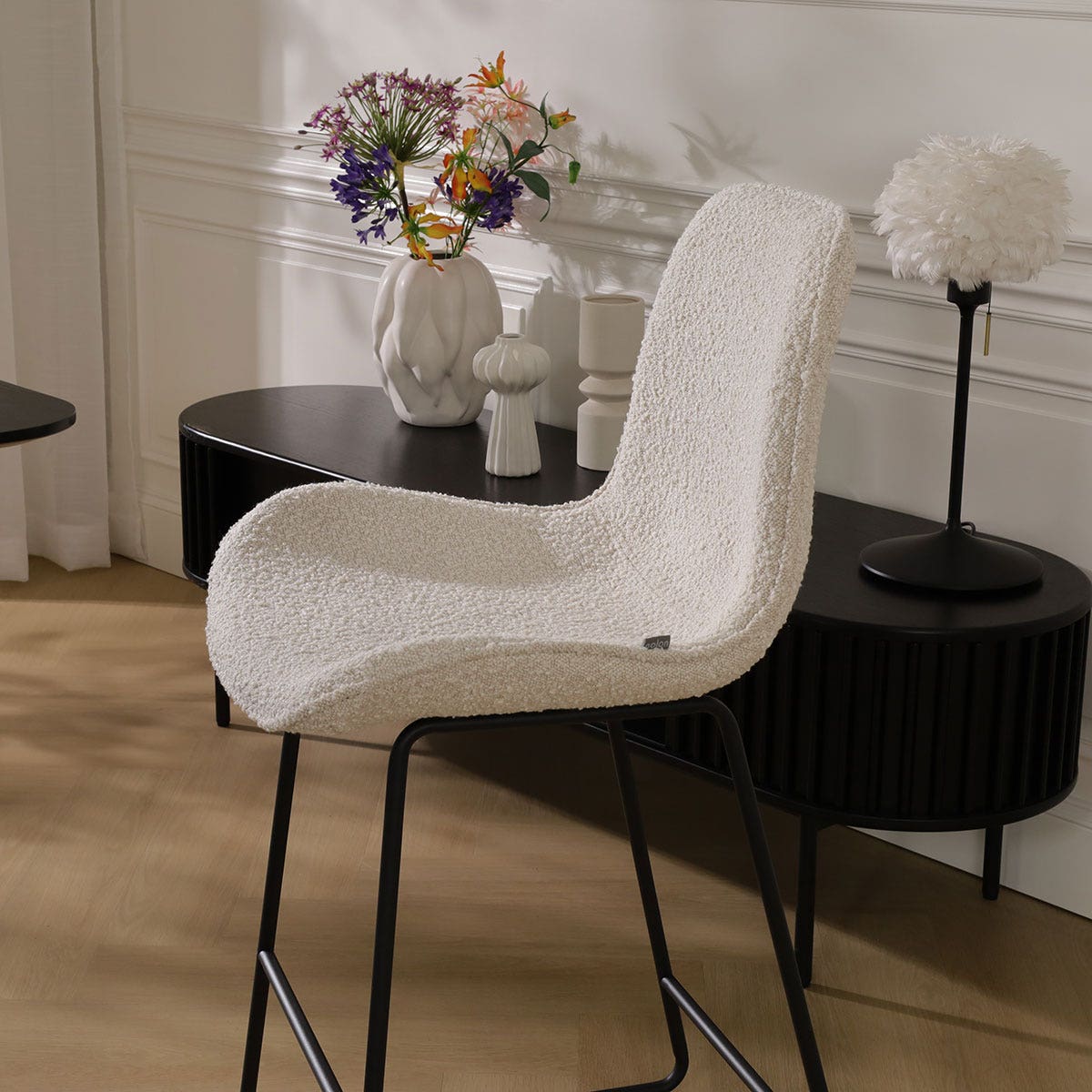 Barkrukken zijn tegenwoordig niet meer weg te denken uit het interieur, en met zo’n stijlvol exemplaar als deze kruk til je jouw interieur naar een hoger niveau. De barkruk heeft een minimalistisch metalen frame voor een luchtige uitstraling en is ontworpen met een voetsteun. De stevige zitting zorgt voor een actieve zithouding, terwijl het gevleugelde zitvlak en de zachte stoffen bekleding zorgen voor veel zitcomfort. Deze barkruk heeft geen armleuningen, waardoor hij onder ieder keukenblad past. Met een keuze uit diverse kleuren en materialen zitting kan je deze sfeervolle barkruk helemaal aan jouw woonstijl aanpassen. Ook het metalen onderstel is verkrijgbaar in twee kleuren: wit en zwart. Zo kan je met Nolon jouw ideale barkruk zelf samenstellen.