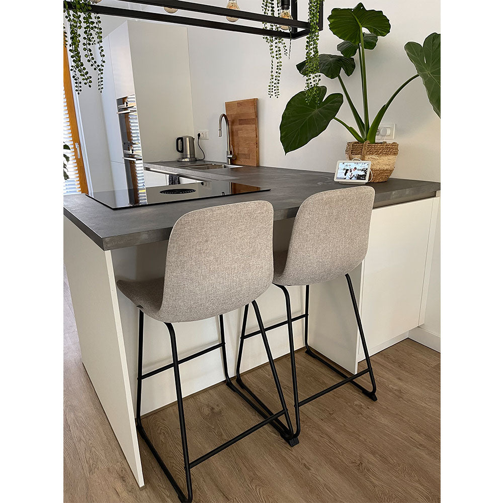 De Nino gestoffeerde barkruk is perfect voor aan het kookeiland.