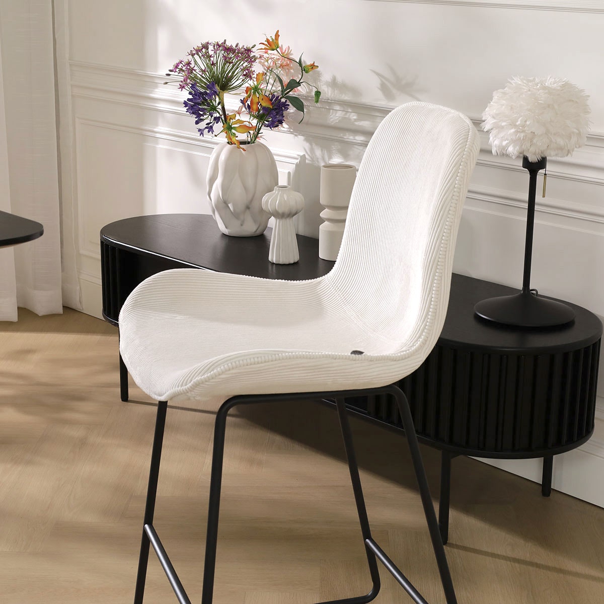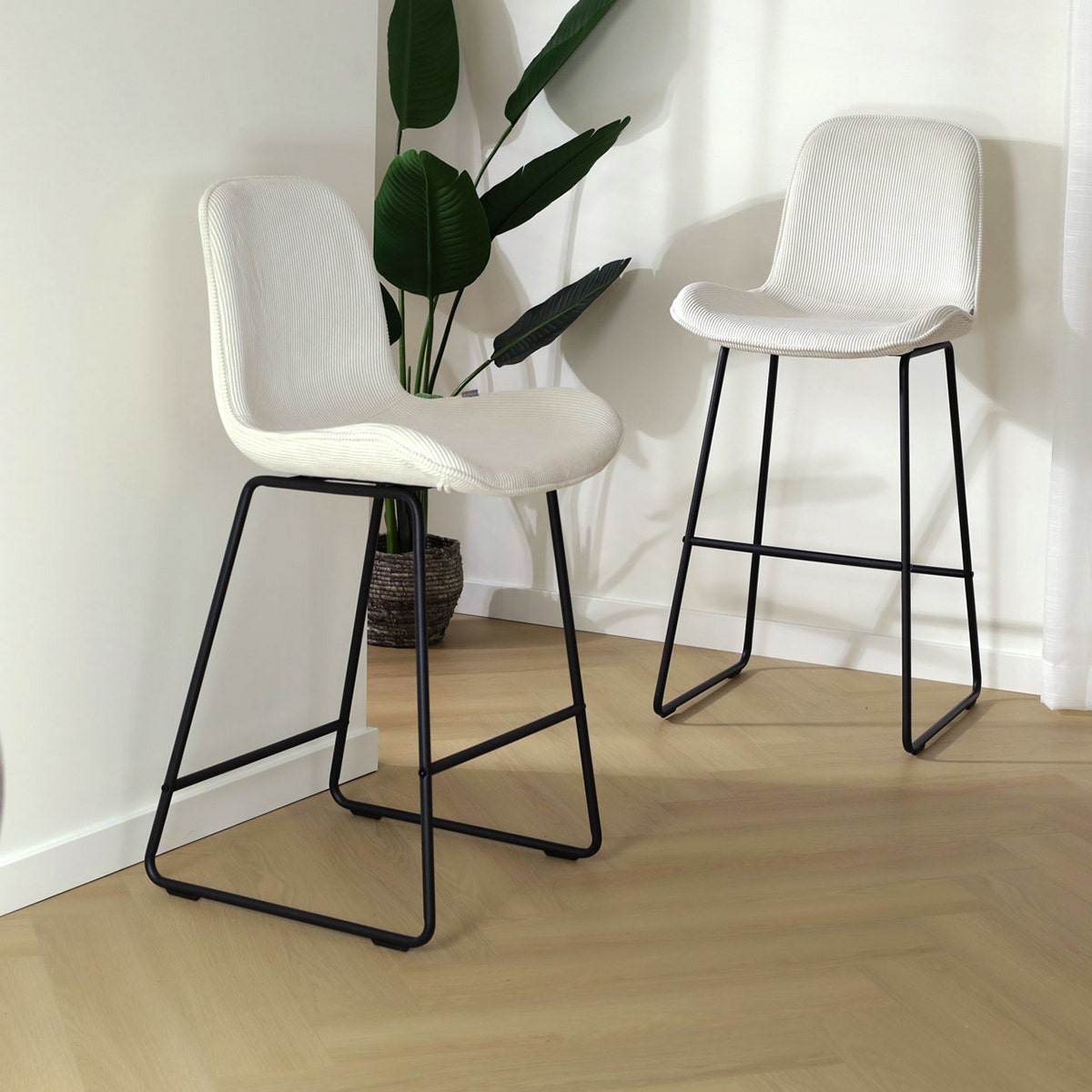Barkrukken zijn tegenwoordig niet meer weg te denken uit het interieur, en met zo’n stijlvol exemplaar als deze kruk til je jouw interieur naar een hoger niveau. De barkruk heeft een minimalistisch metalen frame voor een luchtige uitstraling en is ontworpen met een voetsteun. De stevige zitting zorgt voor een actieve zithouding, terwijl het gevleugelde zitvlak en de zachte stoffen bekleding zorgen voor veel zitcomfort. Deze barkruk heeft geen armleuningen, waardoor hij onder ieder keukenblad past. Met een keuze uit diverse kleuren en materialen zitting kan je deze sfeervolle barkruk helemaal aan jouw woonstijl aanpassen. Ook het metalen onderstel is verkrijgbaar in twee kleuren: wit en zwart. Zo kan je met Nolon jouw ideale barkruk zelf samenstellen.