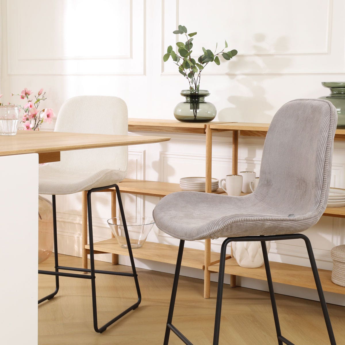 - Dankzij de zithoogte van 65 cm geschikt voor aan een kookeiland of keukenblad met een hoogte van ca. 88-95 cm