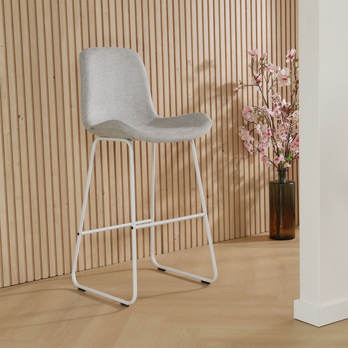 Barkrukken zijn tegenwoordig niet meer weg te denken uit het interieur, en met zo’n stijlvol exemplaar als deze kruk til je jouw interieur naar een hoger niveau. De barkruk heeft een minimalistisch metalen frame voor een luchtige uitstraling en is ontworpen met een voetsteun. De stevige zitting zorgt voor een actieve zithouding, terwijl het gevleugelde zitvlak en de zachte stoffen bekleding zorgen voor veel zitcomfort. Deze barkruk heeft geen armleuningen, waardoor hij onder ieder keukenblad past. Met een keuze uit diverse kleuren en materialen zitting kan je deze sfeervolle barkruk helemaal aan jouw woonstijl aanpassen. Ook het metalen onderstel is verkrijgbaar in twee kleuren: wit en zwart. Zo kan je met Nolon jouw ideale barkruk zelf samenstellen.