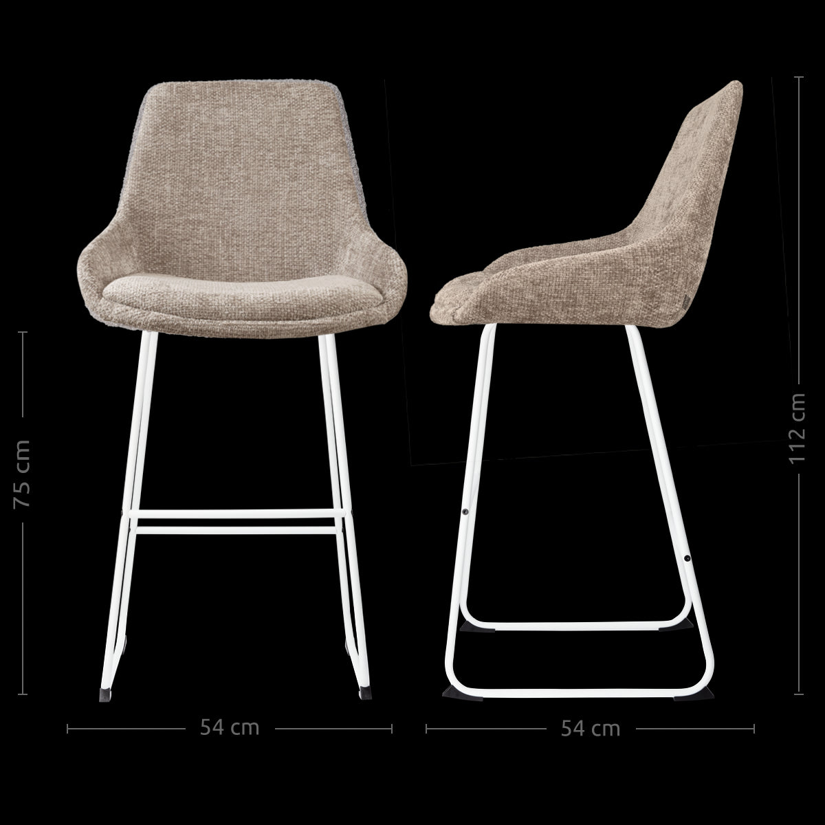 Deze barkruk van het merk Nolon combineert elegantie en comfort, met een luxe bruine stoffering die volledig gestoffeerd is en zonder armleuning komt. Het Scandinavische design wordt versterkt door de strakke witte metalen poten, die het geheel een moderne uitstraling geven. Met een hoogte van 112 cm en een zitdiepte van 40 cm, biedt de barkruk een comfortabele zitervaring, zelfs voor langere periodes. De stevige constructie en hoogwaardige materialen garanderen een duurzame kwaliteit, terwijl de eenvoudige montage je snel laat genieten van je nieuwe aankoop. Deze barkruk is een enkele aankoop en niet als set verkrijgbaar, waardoor je de vrijheid hebt om te kiezen hoeveel je er nodig hebt. Of je nu een gezellige thuisbar of een stijlvolle eetruimte wilt creëren, de Nino-Isa barkruk voegt een vleugje klasse toe aan elke ruimte.
