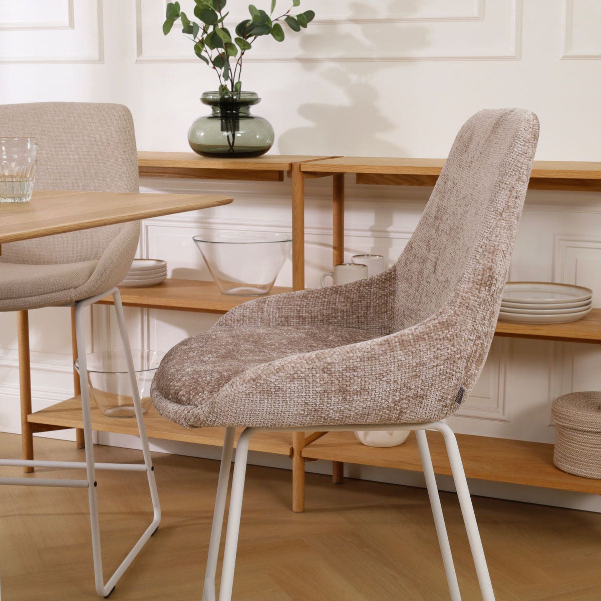 De Nino-Isa barkruk bruin - wit onderstel - 75 cm is onderdeel van een mix en match collectie. Dit betekent dat zowel het onderstel als de zitting van deze stoel in diverse andere combinaties verkrijgbaar zijn. Zo is de stoel met een wit onderstel en een zwart onderstel verkrijgbaar in de kleuren bouclé taupe, bouclé beige, beige, warm grijs, groen, bruin en beige gemêleerd. Deze veelzijdigheid biedt de mogelijkheid om de perfecte barkruk te kiezen die past bij jouw interieur. Met een zithoogte van zowel 65 cm als 75 cm, is er voor iedere tafel of bar de juiste optie te vinden.