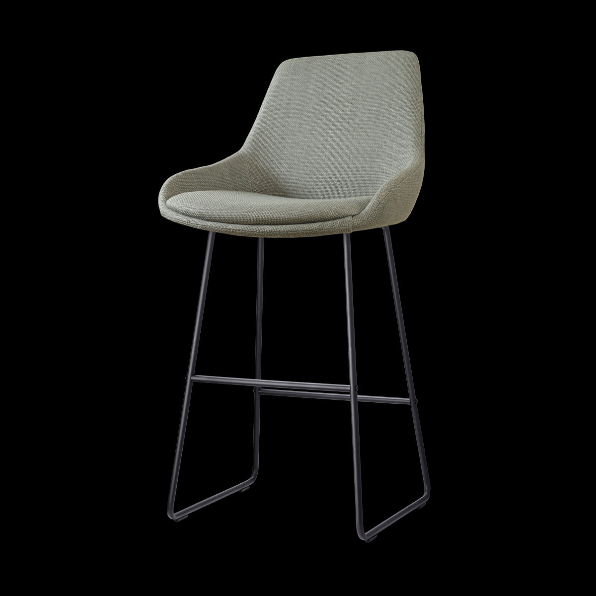De Nino-Isa barkruk van Nolon is een stijlvolle aanvulling op je interieur, met zijn moderne groene bekleding en slanke zwarte metalen onderstel.