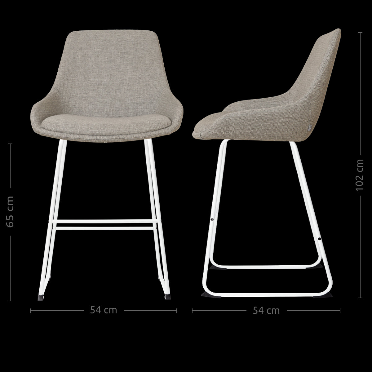 Deze stijlvolle barkruk heeft een zithoogte van 65 cm, perfect voor gebruik aan een kookeiland of keukenblad met een hoogte van circa 88-95 cm. De volledig gestoffeerde zitting in een luxe bouclé stof biedt een comfortabele zitervaring, ondersteund door een stevig houten binnenwerk. Het slanke witte metalen onderstel met voetsteun draagt bij aan zowel stabiliteit als een moderne uitstraling. Dankzij het minimalistische ontwerp en het ontbreken van armleuningen neemt de barkruk weinig ruimte in beslag, waardoor hij eenvoudig onder elk keukenblad kan worden geschoven. De Nino-Isa is zeer eenvoudig in elkaar te zetten, wat de montage tot een fluitje van een cent maakt. Met een totale hoogte van 102 cm en een zitdiepte van 40 cm, past deze veelzijdige barkruk moeiteloos in diverse interieurstijlen en biedt hij zowel stijl als comfort voor gezellige avonden aan de bar of het kookeiland.