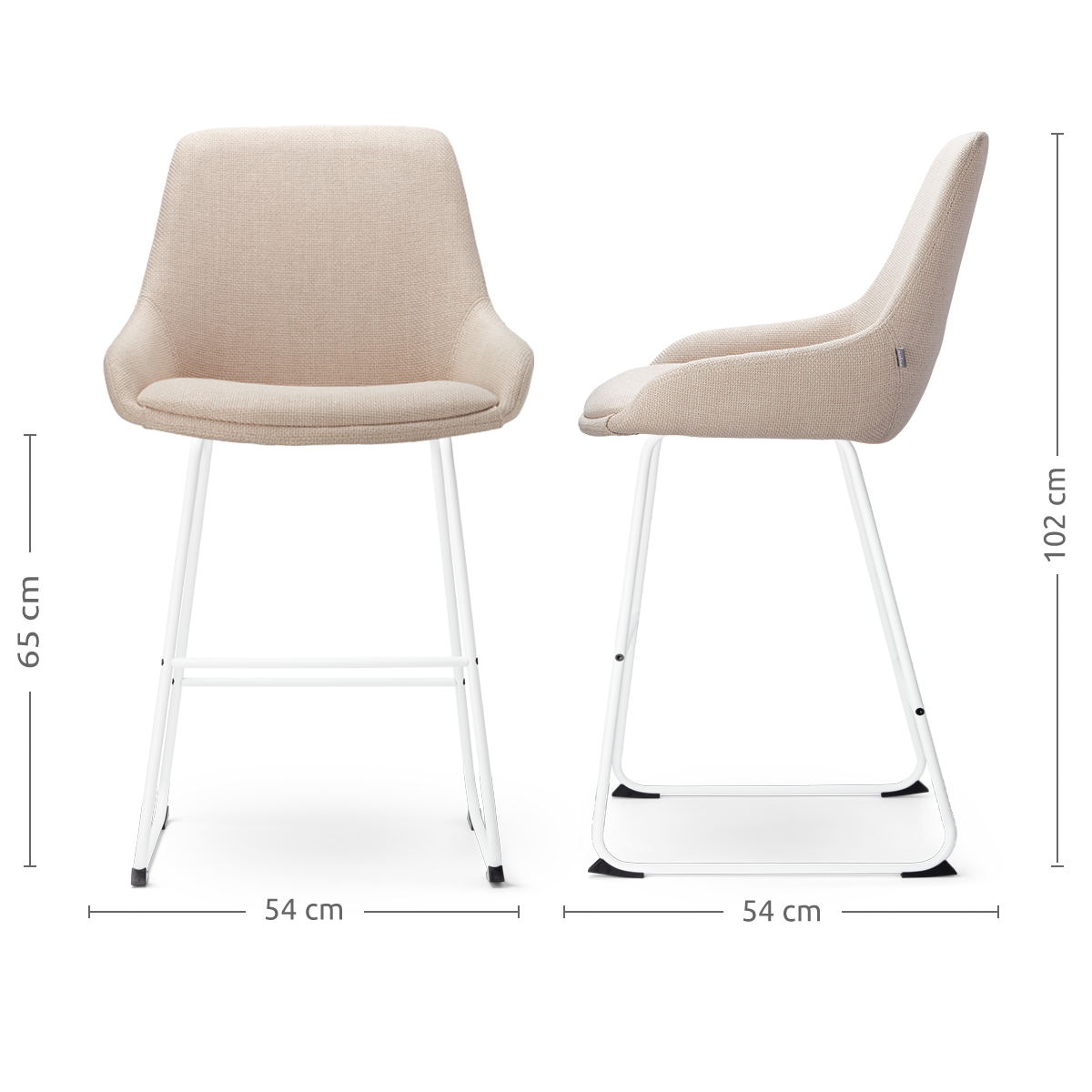 - Dankzij de zithoogte van 65 cm geschikt voor aan een kookeiland of keukenblad met een hoogte van ca. 88-95 cm