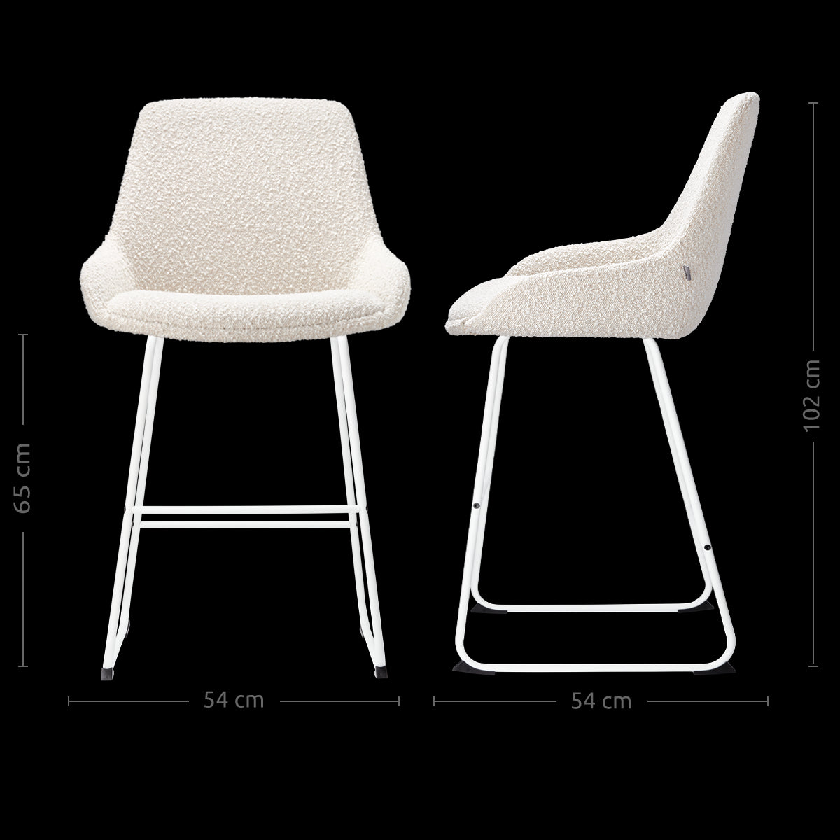 - Dankzij de zithoogte van 65 cm geschikt voor aan een kookeiland of keukenblad met een hoogte van ca. 88-95 cm