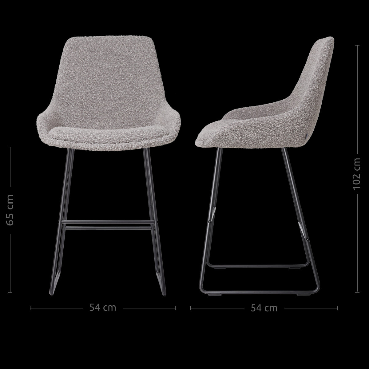 De barkruk heeft een slank frame gemaakt van metaal, wat zorgt voor stevigheid en een moderne uitstraling. De stoffen zitting is voorzien van een gevoerd zitvlak voor extra comfort. De voetsteun op het frame maakt de ontspannen zithouding compleet. De bekleding van deze kookeiland barkruk is verkrijgbaar in twee verschillende kleuren en materialen. De Nino-Isa barkruk met bouclé stof heeft de ultieme warme en gezellige uitstraling, terwijl de luxe stoffen bekleding zorgt voor een meer tijdloze uitstraling. Afhankelijk van jouw smaak kan je deze kruk dus aan jouw interieur aanpassen. Erg handig: deze barkruk heeft geen armleuningen, dus je schuift hem zo onder het keukenblad. Ideaal als je niet veel ruimte hebt in de keuken.
