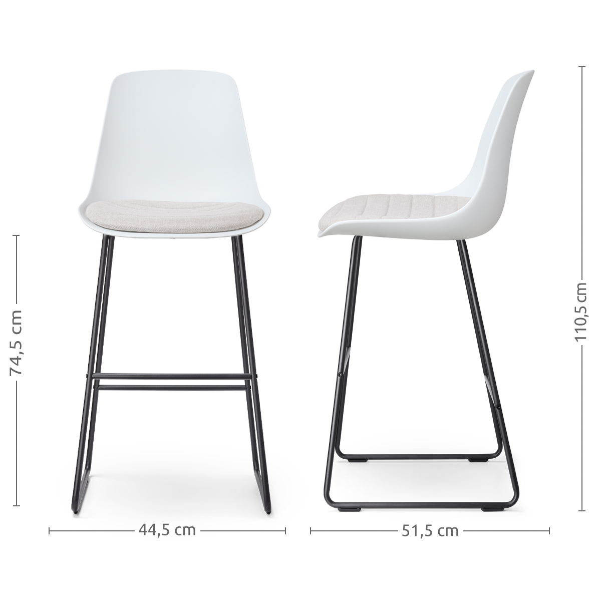 - Dankzij de zithoogte van 74,5 cm geschikt voor aan een bar of hoge eettafel met een hoogte van ca. 98-105 cm