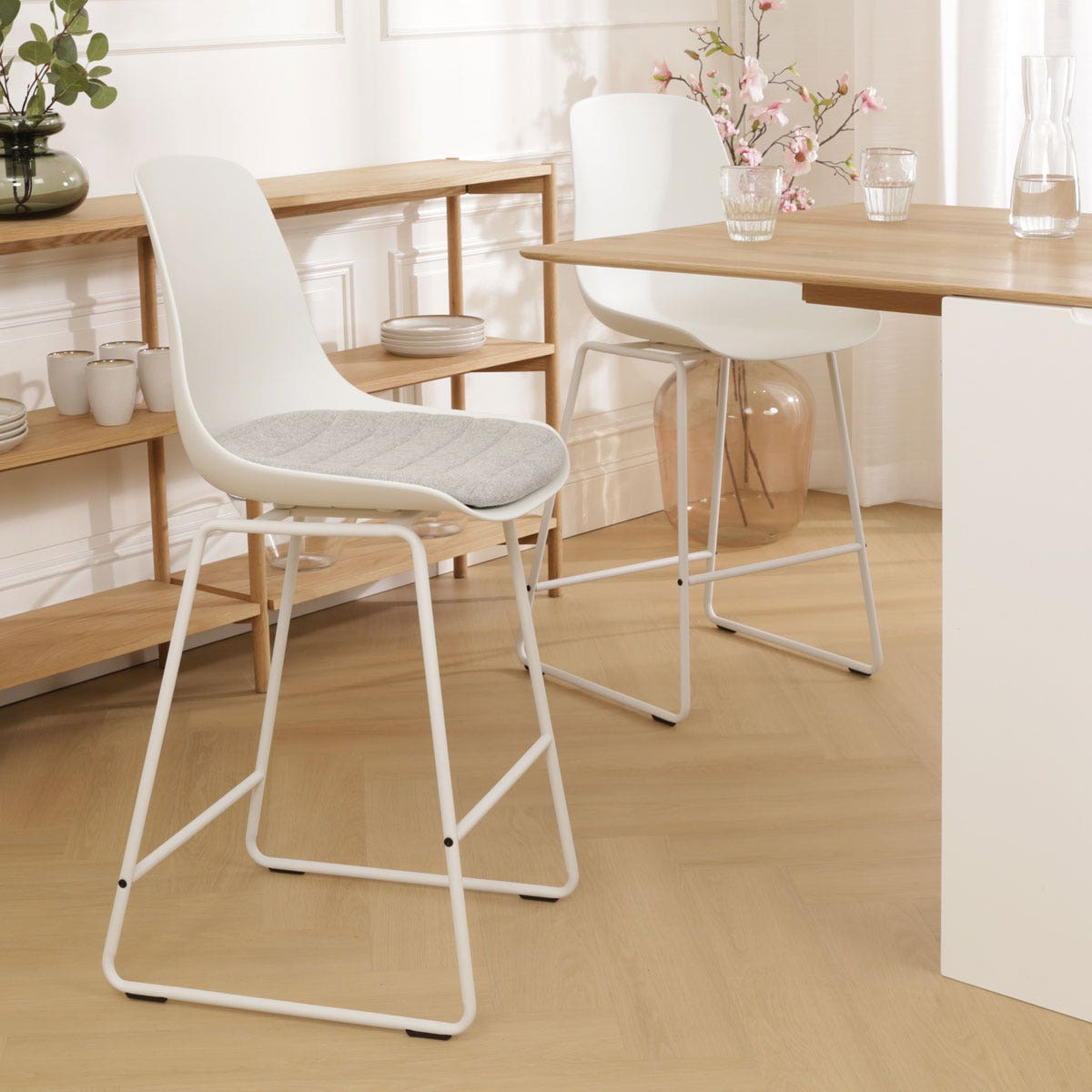 Deze barkruk heeft een strak en modern design dat een mooie aanvulling is voor veel verschillende woonstijlen. Het frame van deze kruk is gemaakt van metaal en is ontworpen met subtiele rondingen en slanke poten voor een minimalistische uitstraling. De zitting is gemaakt van kunststof, wat de Nino-Liv barkruk erg praktisch maakt in gebruik. Dit materiaal is duurzaam, slijtvast en gemakkelijk schoon te maken als er is geknoeid. De perfecte keuze voor een eethoek waar veel tijd wordt doorgebracht dus. Het vaste zitkussen zorgt ervoor dat je net iets zachter zit en voegt bovendien een vleugje kleur toe in de eethoek. Maak een keuze uit de vijf verschillende kleuren stoffen bekleding en kies tussen wit of zwart voor de zitting en het frame, om deze barkruk helemaal aan jouw inrichting aan te passen. Met een zithoogte van 74,5 cm is deze kunststof barkruk geschikt om te gebruiken aan een hoge bar of eettafel. Op zoek naar een lager exemplaar? De Nino-Liv barkruk is ook verkrijgbaar met aan lagere zithoogte.