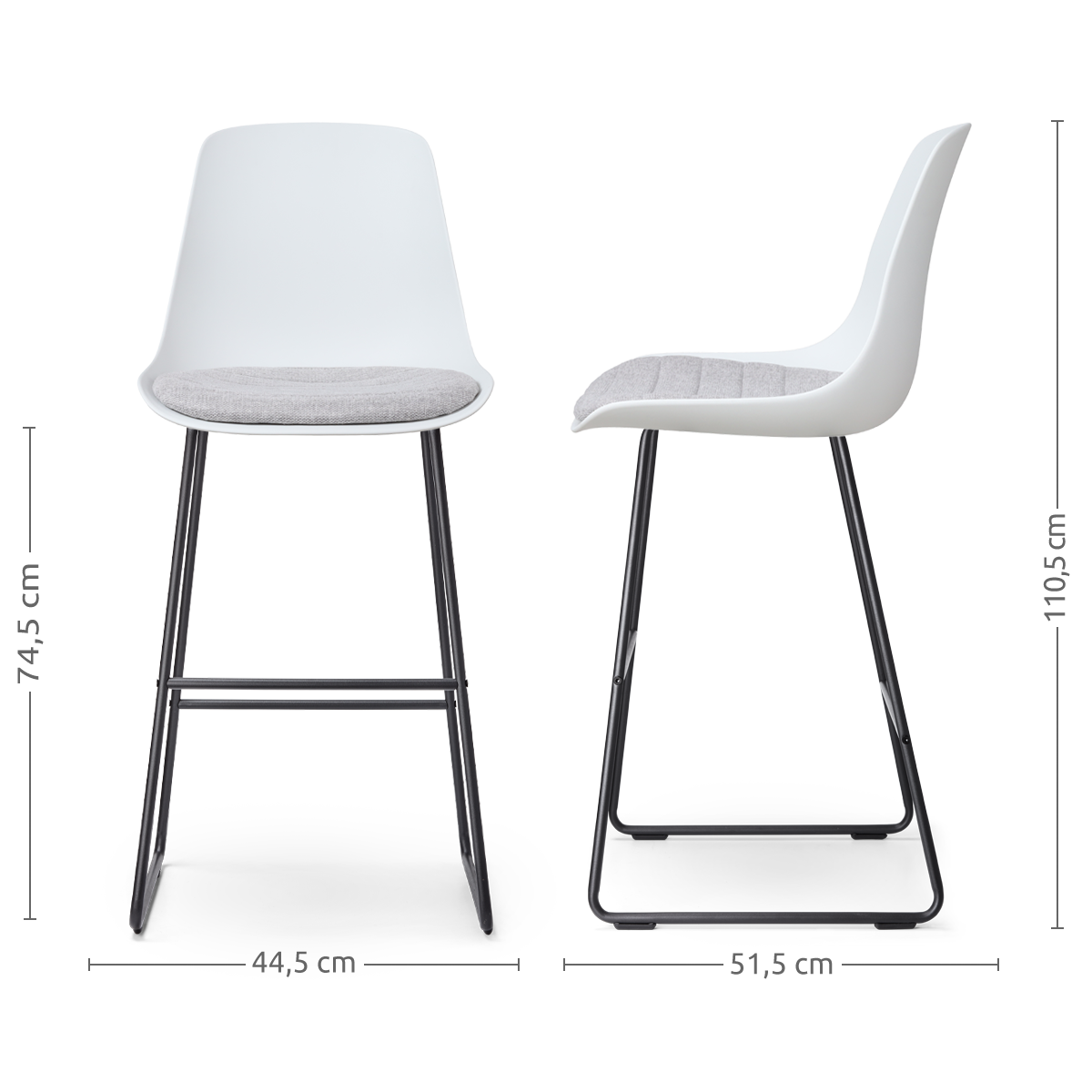 Nolon Nino-Liv Barkruk Wit - Lichtgrijs Kussen - Zwart Frame - 75 cm