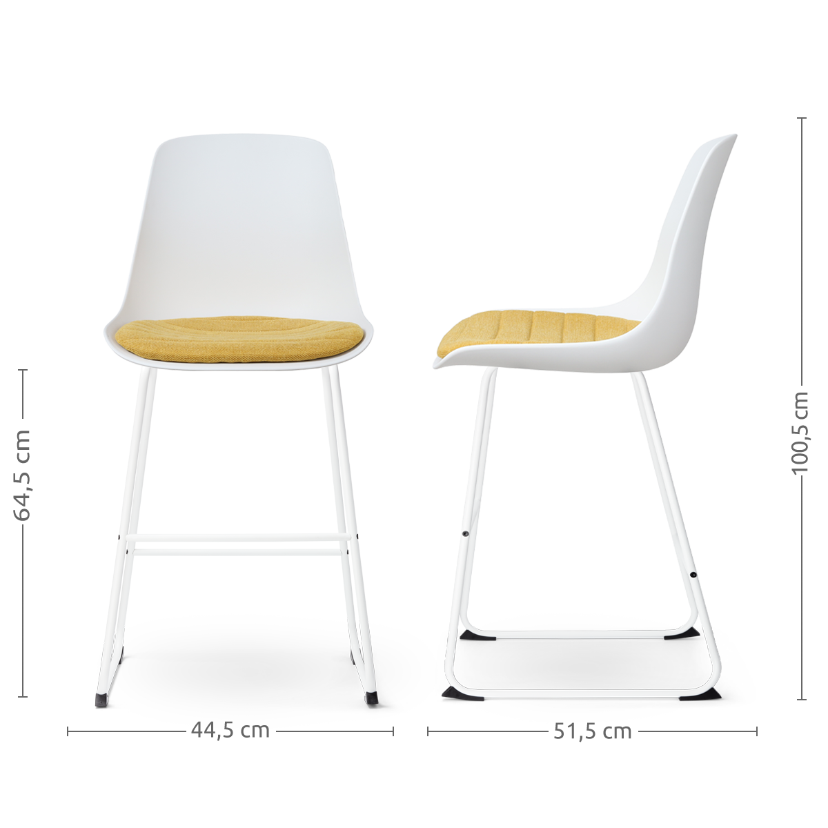 - Dankzij de zithoogte van 64,5 cm geschikt voor aan een kookeiland of keukenblad met een hoogte van ca. 88-95 cm