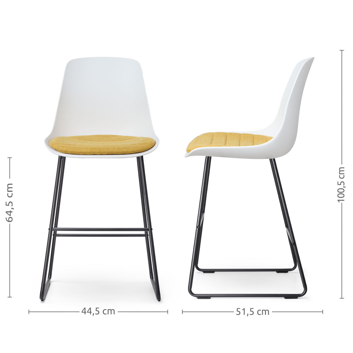 - Dankzij de zithoogte van 64,5 cm geschikt voor aan een kookeiland of keukenblad met een hoogte van ca. 88-95 cm