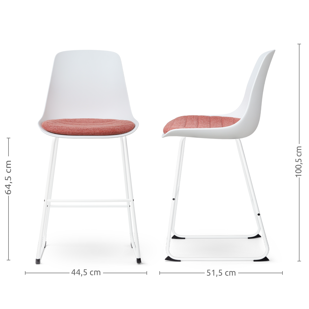 De barkruk heeft een slank en minimalistisch metalen frame dat voor stabiliteit zorgt. Het frame is voorzien van een voetsteun zodat je je benen niet hoeft te laten bungelen. De zitting is gemaakt van kunststof, wat zowel duurzaam als slijtvast is. Bovendien is dit materiaal erg onderhoudsvriendelijk en gemakkelijk schoon te maken, dus de Nino-Liv barkruk is zeer geschikt voor intensief gebruik. Om het comfort van deze moderne barkruk te verhogen, is de zitting voorzien van een vast stoelkussen dat is bekleed met zachte stof. Maak een keuze uit de verschillende kleuren zitting, frame en zitkussen om deze barkruk helemaal aan jouw wensen te laten voldoen. Met een zithoogte van 64,5 cm is deze barkruk geschikt om te gebruiken aan een kookeiland. Heb je een hogere barkruk nodig? Deze barkruk is ook verkrijgbaar met een zithoogte van 74,5 cm.
