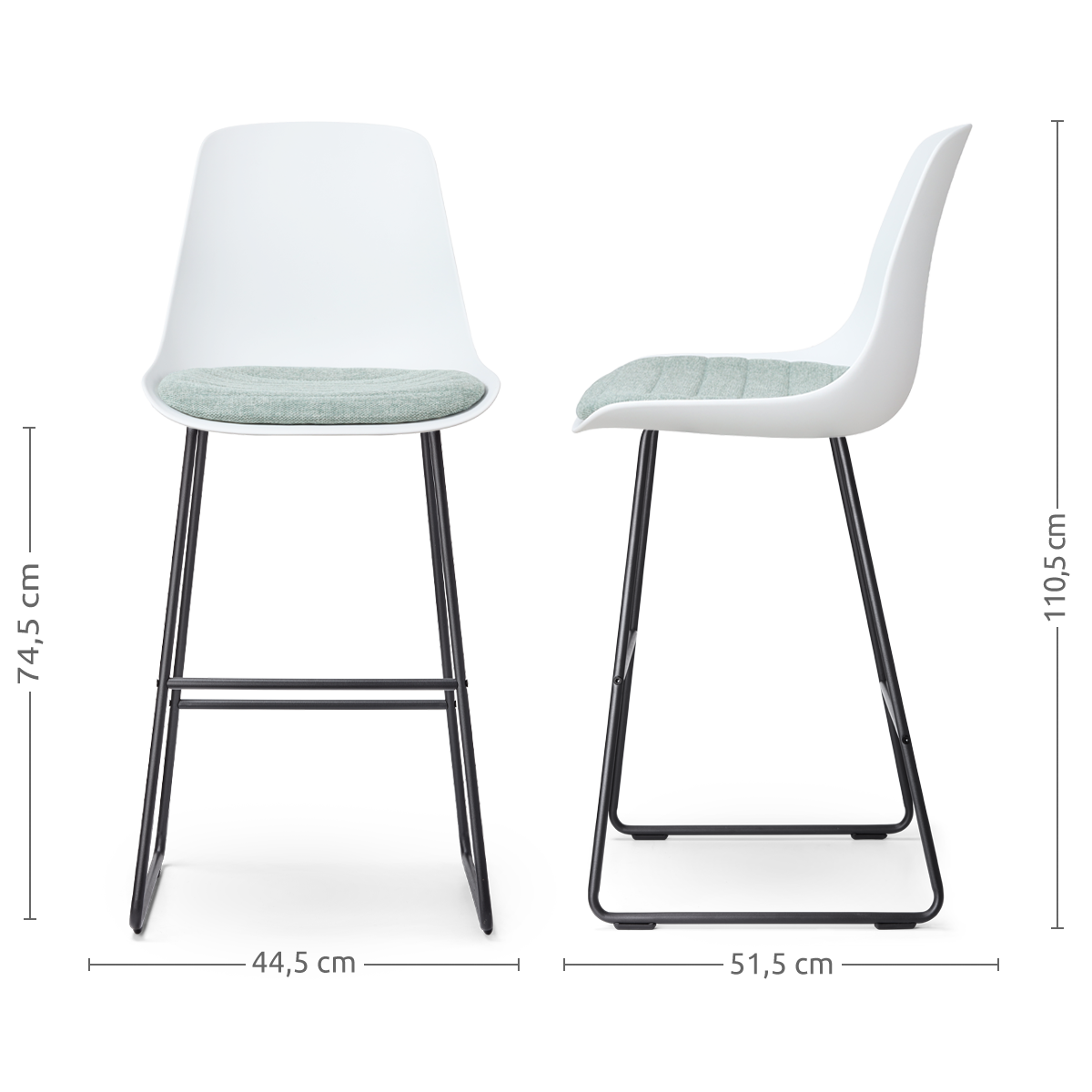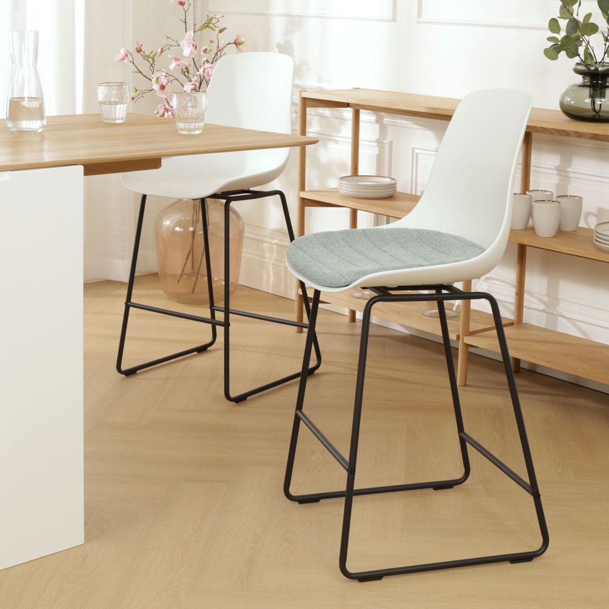 Deze barkruk heeft een strak en modern design dat een mooie aanvulling is voor veel verschillende woonstijlen. Het frame van deze kruk is gemaakt van metaal en is ontworpen met subtiele rondingen en slanke poten voor een minimalistische uitstraling. De zitting is gemaakt van kunststof, wat de Nino-Liv barkruk erg praktisch maakt in gebruik. Dit materiaal is duurzaam, slijtvast en gemakkelijk schoon te maken als er is geknoeid. De perfecte keuze voor een eethoek waar veel tijd wordt doorgebracht dus. Het vaste zitkussen zorgt ervoor dat je net iets zachter zit en voegt bovendien een vleugje kleur toe in de eethoek. Maak een keuze uit de vijf verschillende kleuren stoffen bekleding en kies tussen wit of zwart voor de zitting en het frame, om deze barkruk helemaal aan jouw inrichting aan te passen. Met een zithoogte van 74,5 cm is deze kunststof barkruk geschikt om te gebruiken aan een hoge bar of eettafel. Op zoek naar een lager exemplaar? De Nino-Liv barkruk is ook verkrijgbaar met aan lagere zithoogte.