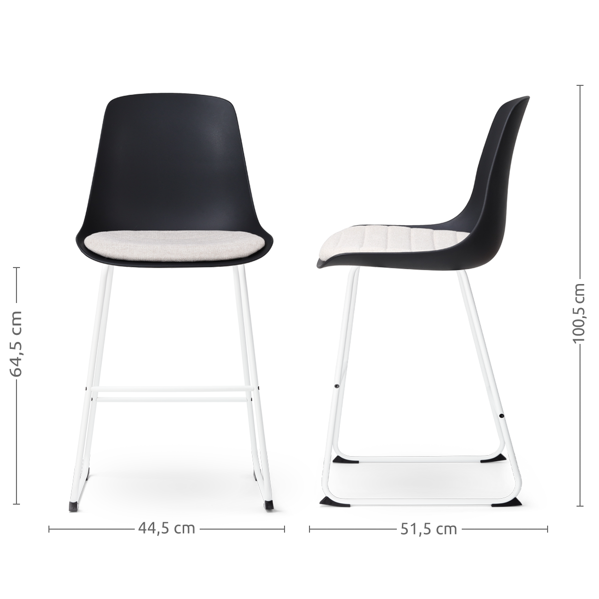 - Dankzij de zithoogte van 64,5 cm geschikt voor aan een kookeiland of keukenblad met een hoogte van ca. 88-95 cm
