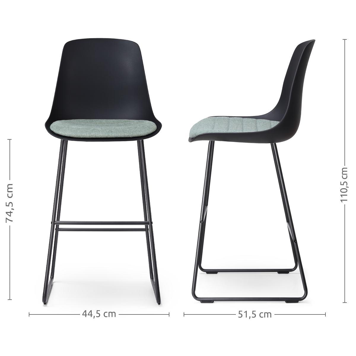 - Dankzij de zithoogte van 74,5 cm geschikt voor aan een bar of hoge eettafel met een hoogte van ca. 98-105 cm