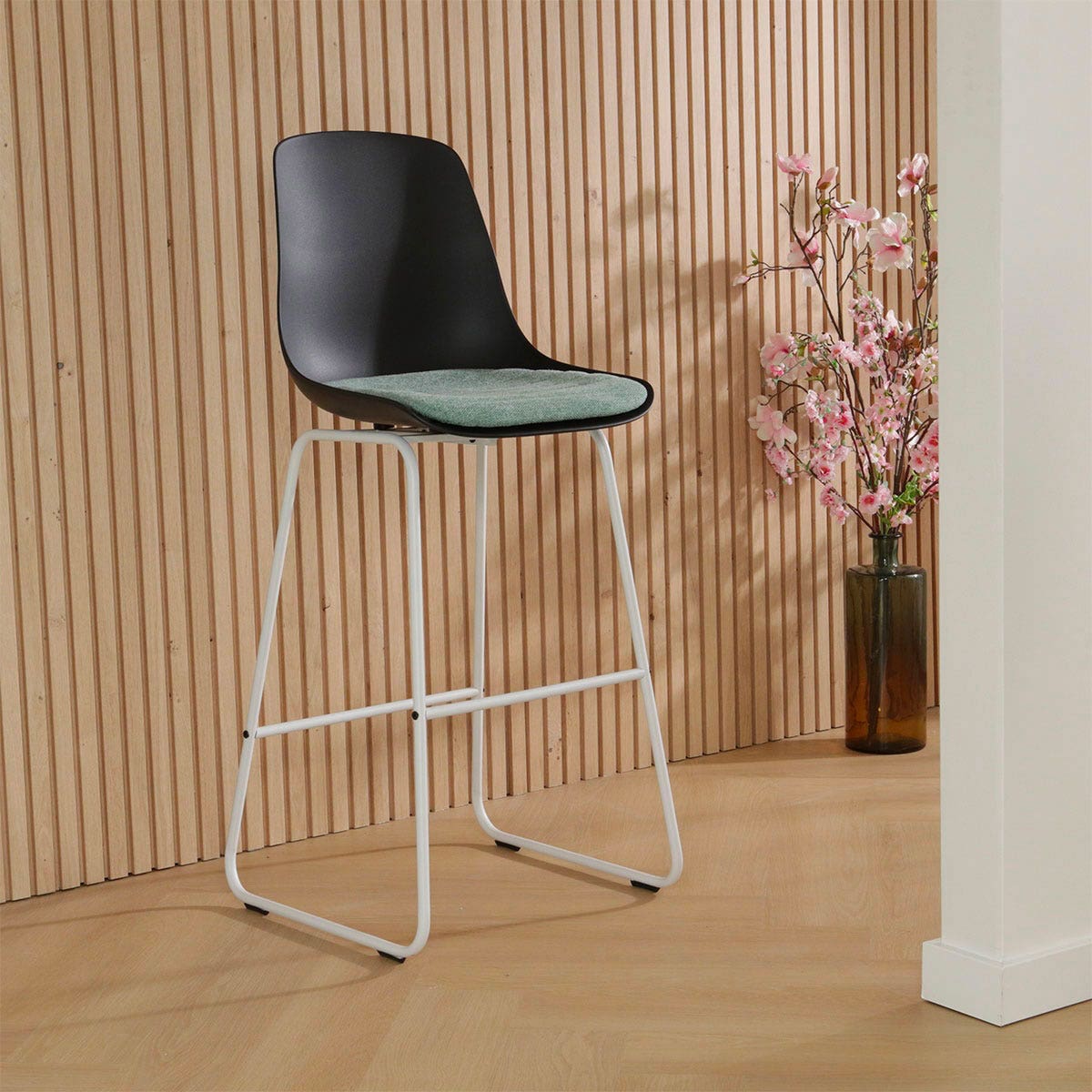 Deze barkruk heeft een strak en modern design dat een mooie aanvulling is voor veel verschillende woonstijlen. Het frame van deze kruk is gemaakt van metaal en is ontworpen met subtiele rondingen en slanke poten voor een minimalistische uitstraling. De zitting is gemaakt van kunststof, wat de Nino-Liv barkruk erg praktisch maakt in gebruik. Dit materiaal is duurzaam, slijtvast en gemakkelijk schoon te maken als er is geknoeid. De perfecte keuze voor een eethoek waar veel tijd wordt doorgebracht dus. Het vaste zitkussen zorgt ervoor dat je net iets zachter zit en voegt bovendien een vleugje kleur toe in de eethoek. Maak een keuze uit de vijf verschillende kleuren stoffen bekleding en kies tussen wit of zwart voor de zitting en het frame, om deze barkruk helemaal aan jouw inrichting aan te passen. Met een zithoogte van 74,5 cm is deze kunststof barkruk geschikt om te gebruiken aan een hoge bar of eettafel. Op zoek naar een lager exemplaar? De Nino-Liv barkruk is ook verkrijgbaar met aan lagere zithoogte.