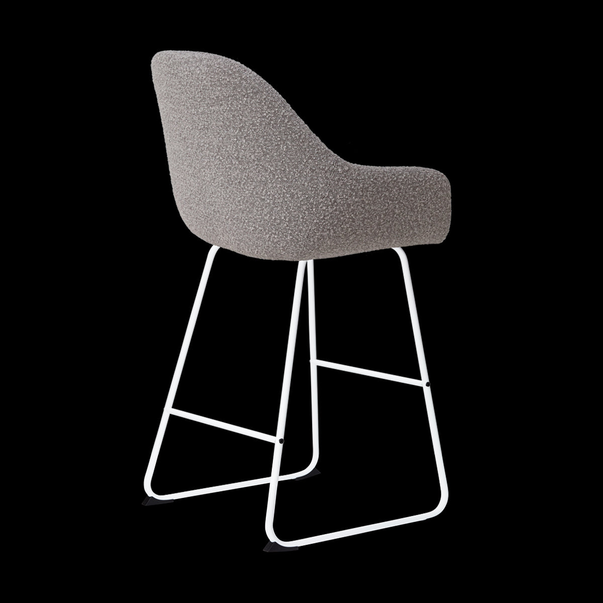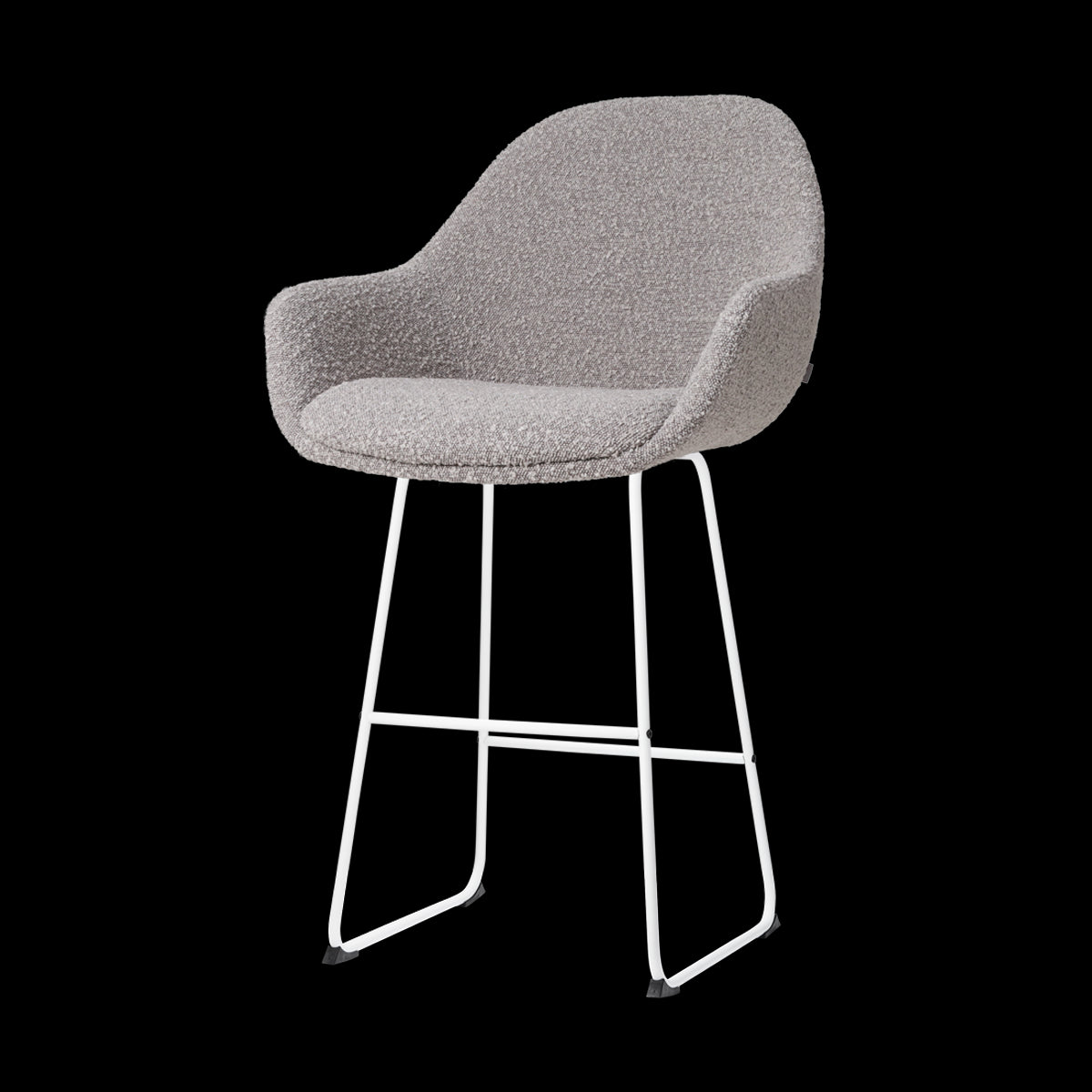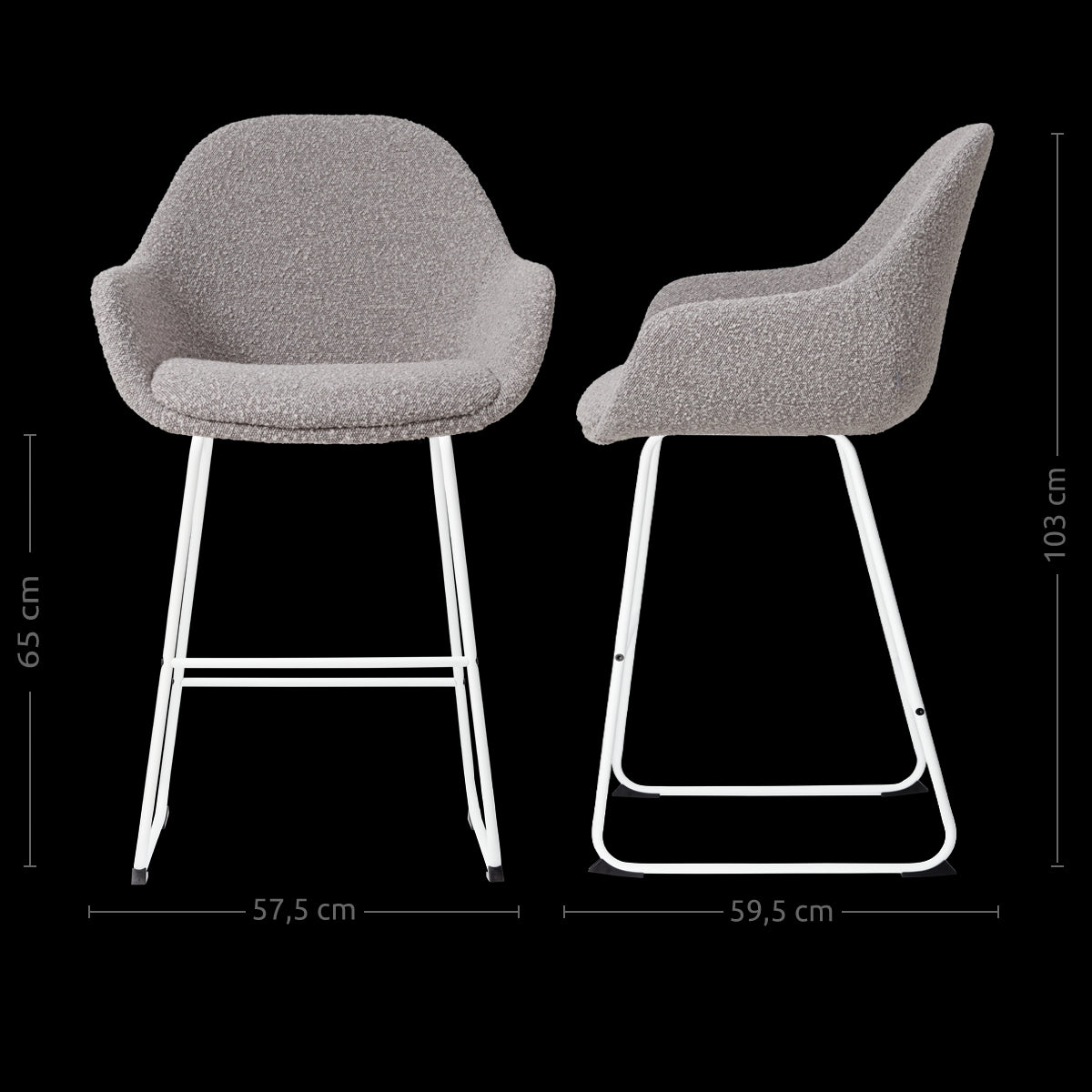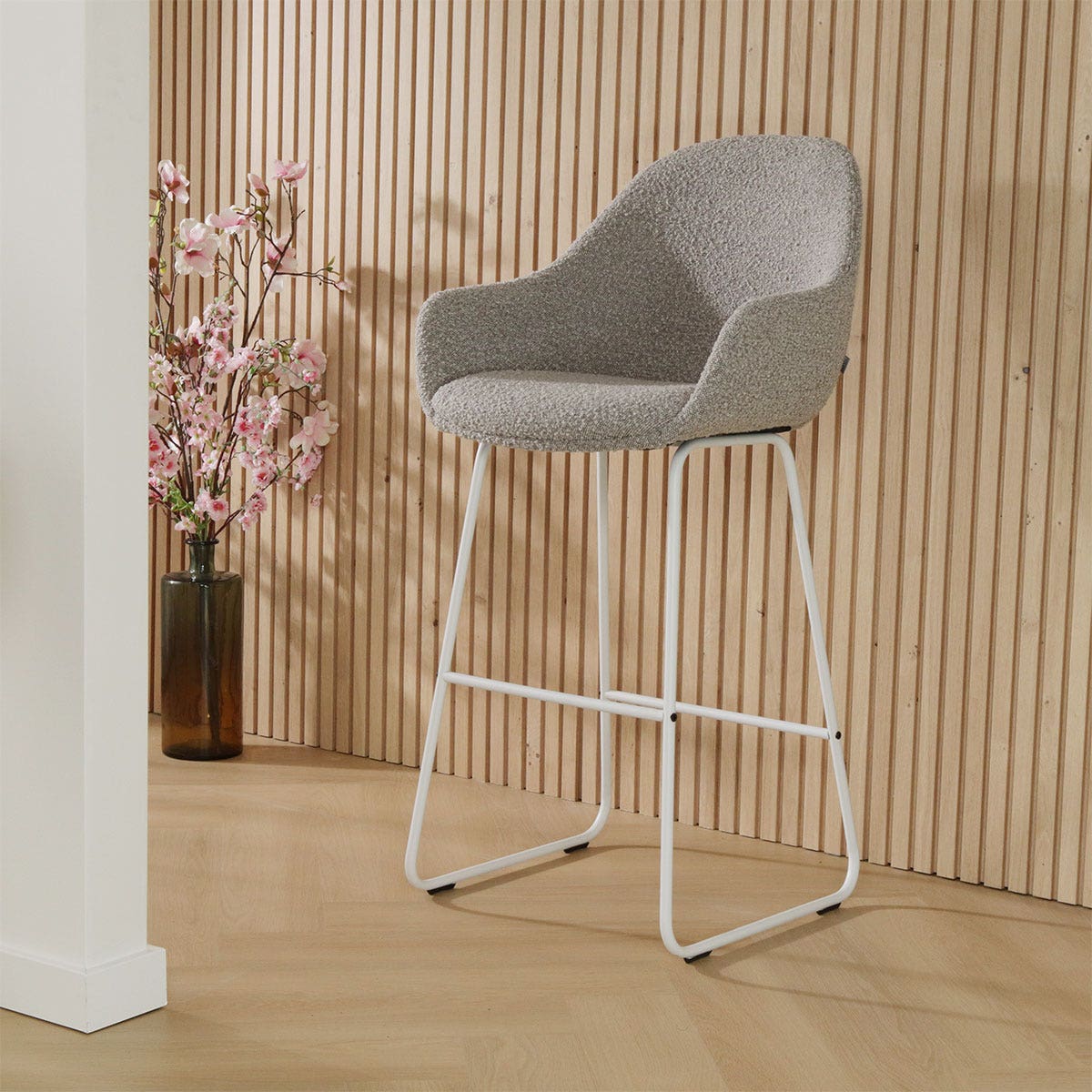 Bouclé barkruk met armleuning in taupe en wit - modern en luxe.