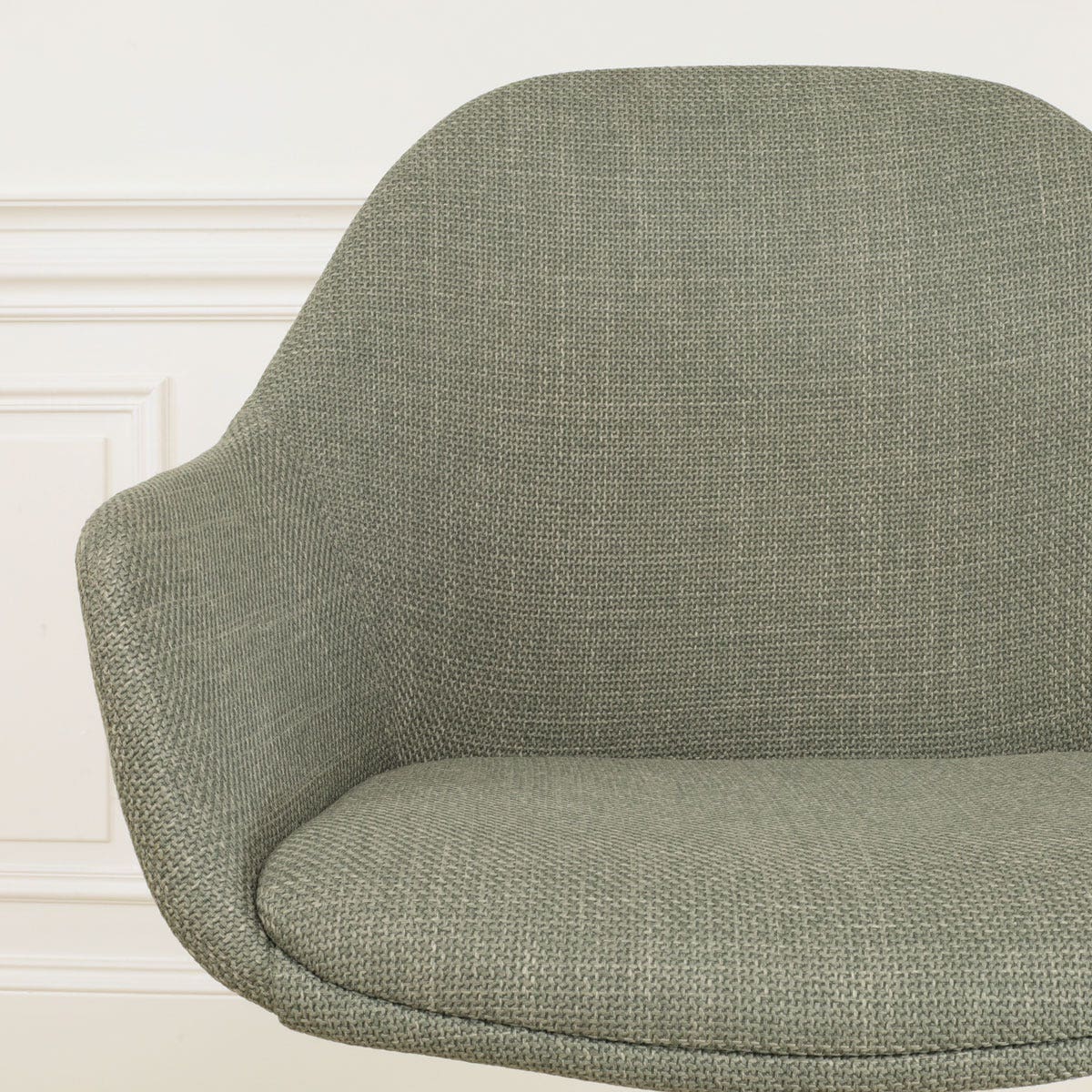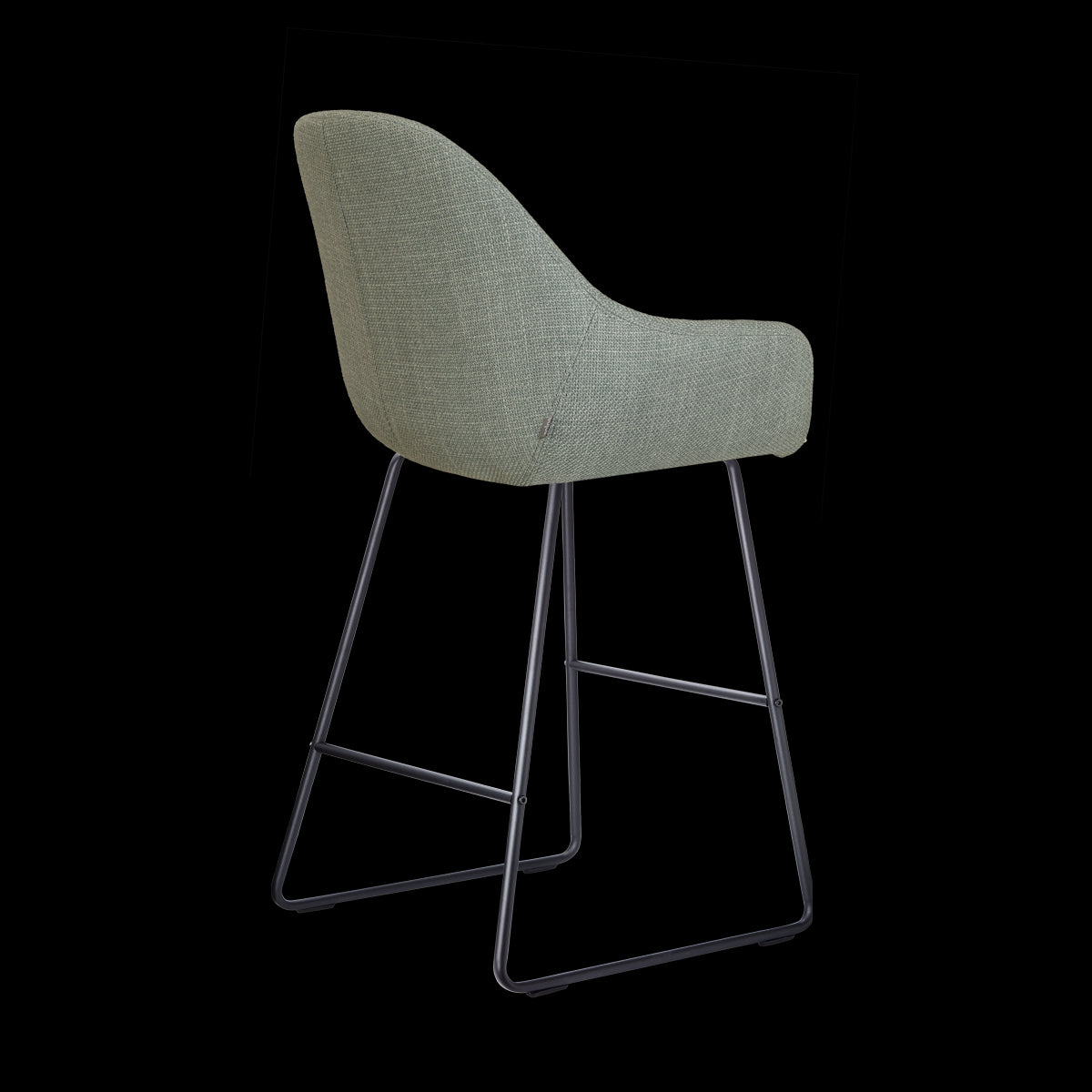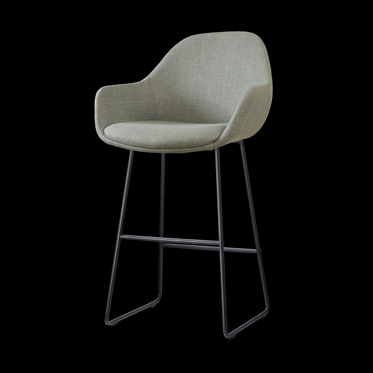 Met de Nino-Mae saliegroene barstoel met armleuning van Nolon zit je net zo lekker aan de bar als aan een gewone eettafel.