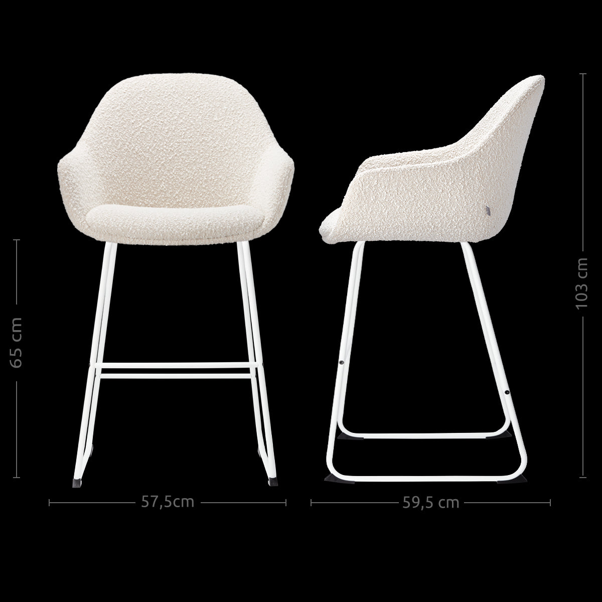 - Dankzij de zithoogte van 65 cm geschikt voor aan een kookeiland of keukenblad met een hoogte van ca. 88-95 cm