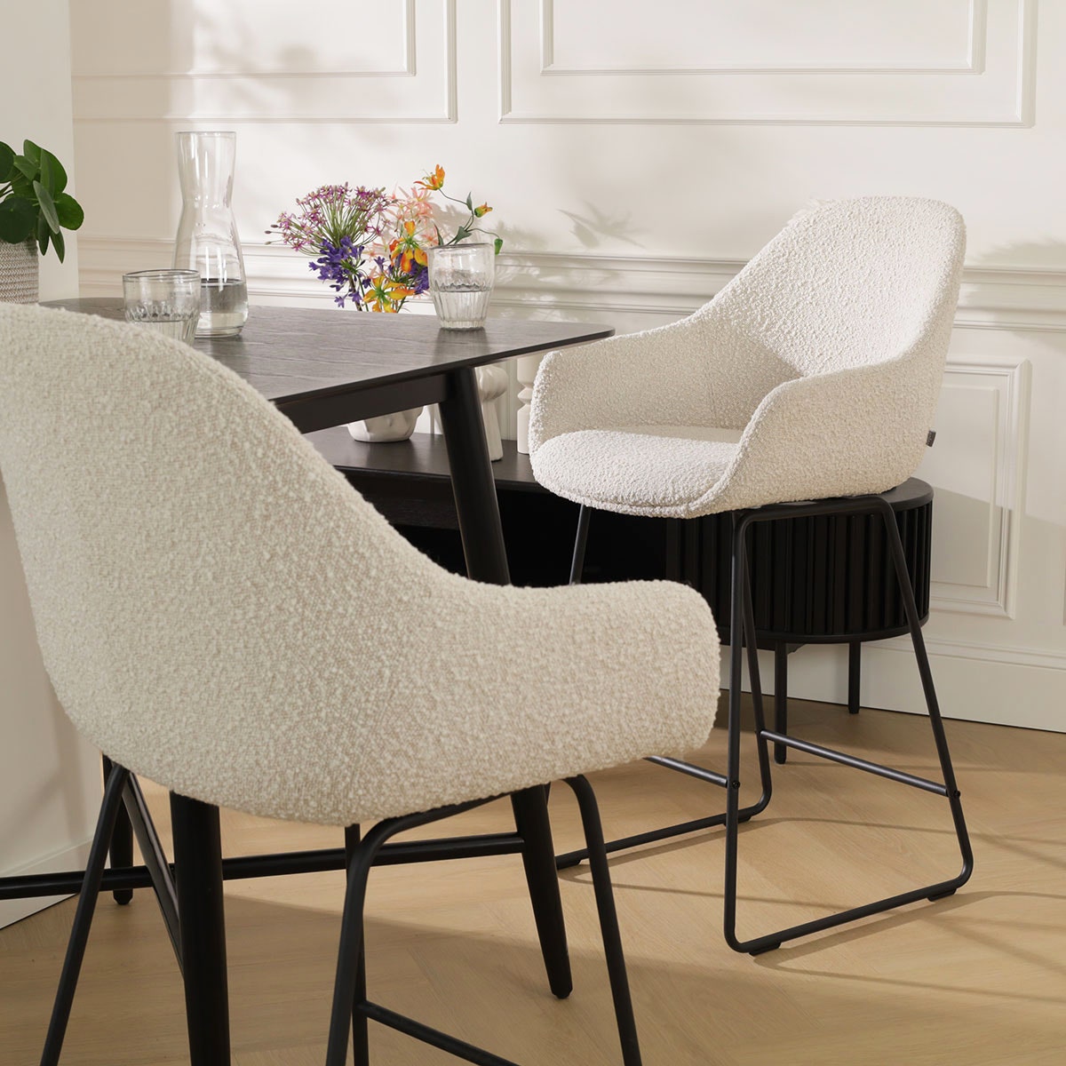 Heerlijk genieten van je kopje koffie of de krant aan het kookeiland doe je met de set van twee Nino-Mae barkrukken van Nolon.