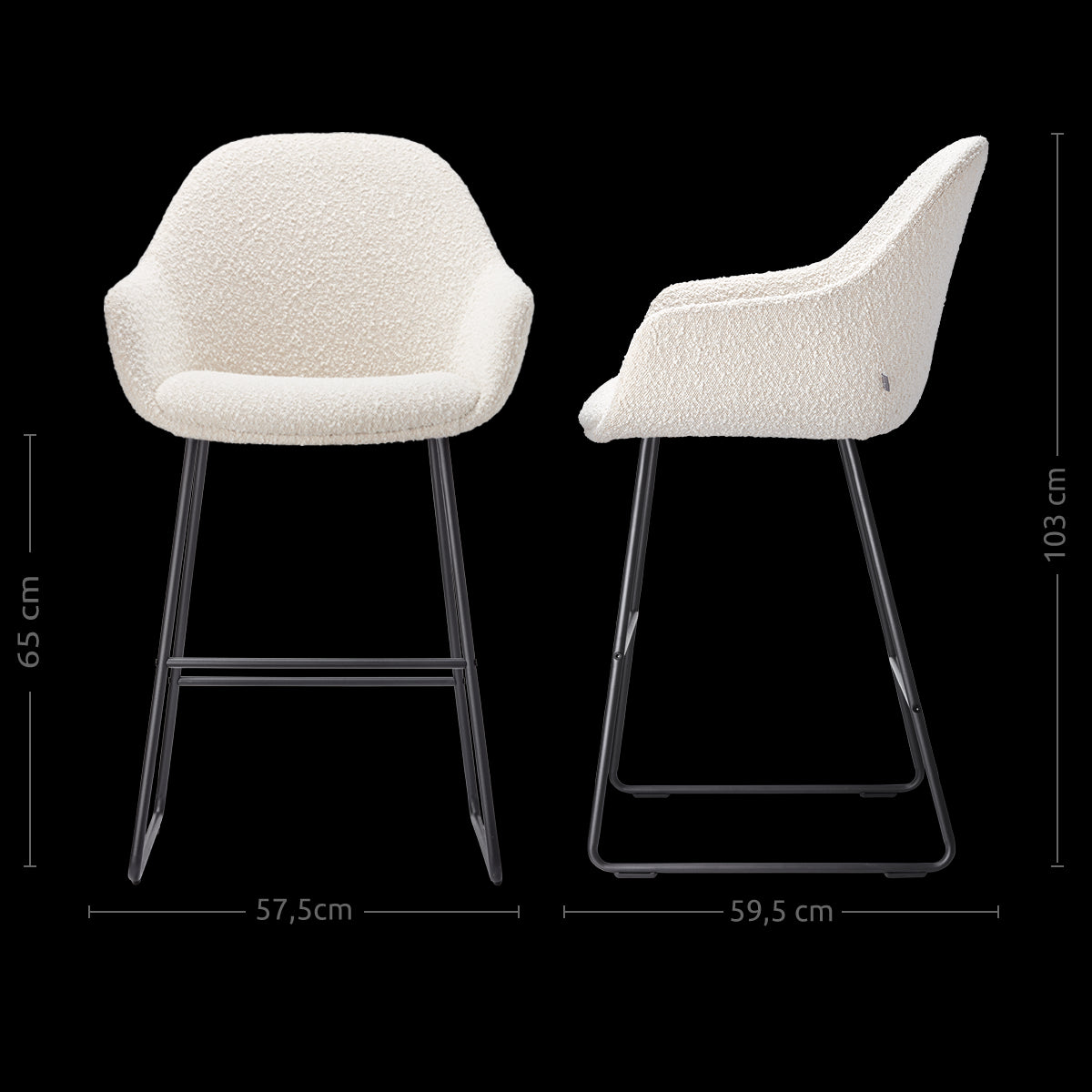 - Dankzij de zithoogte van 65 cm geschikt voor aan een kookeiland of keukenblad met een hoogte van ca. 88-95 cm