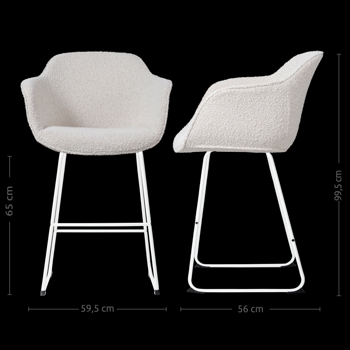 - Dankzij de zithoogte van 65 cm geschikt voor aan een kookeiland of keukenblad met een hoogte van ca. 88-95 cm