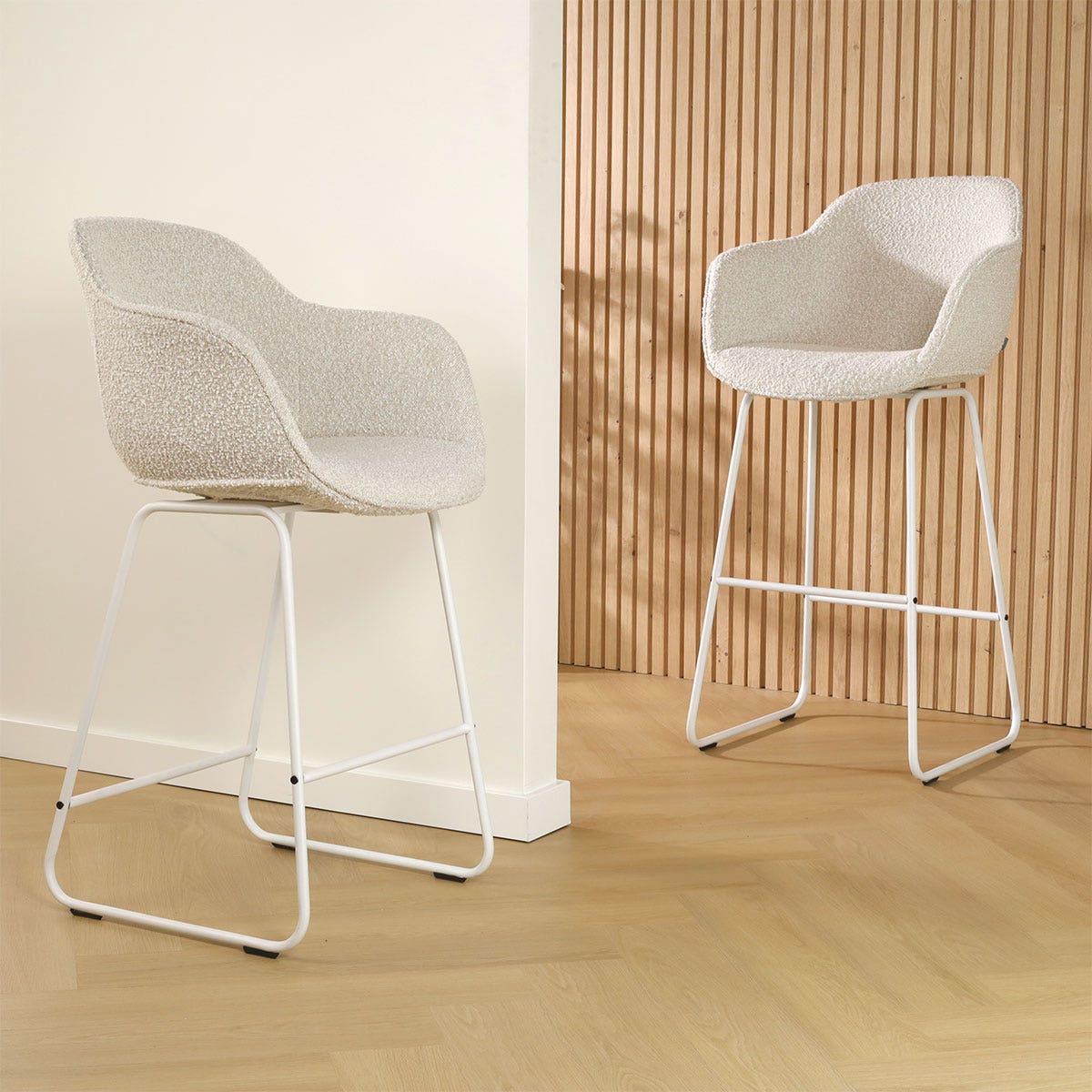 De Nino-Mare barkruk met bouclé zitting maakt jouw kookeiland af in stijl!