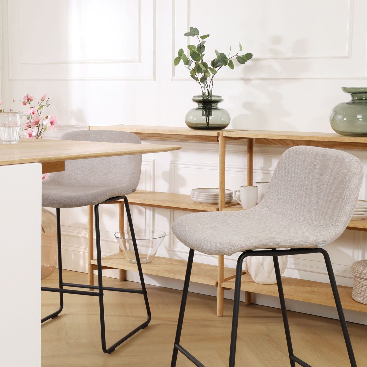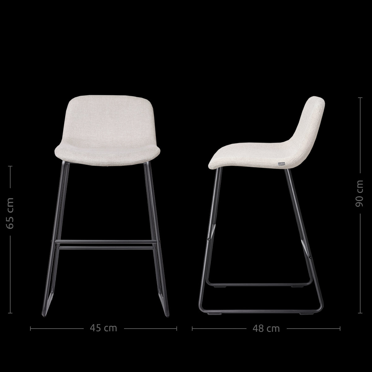 Deze tijdloze barkruk combineert een strak metalen onderstel met een gestoffeerde zitting. De zitting heeft een lage rugleuning, waardoor je een actieve zithouding hebt op deze barkruk. De stoffen bekleding zorgt ervoor dat je lekker zacht zit. Het moderne metalen onderstel met voetensteun biedt stabiliteit en geeft de barkruk een moderne uitstraling. Of je nu gaat voor een industriële look of een eigentijdse stijl in huis, de Nino-Mats barkruk is voor elk interieur een geschikte keuze. Dankzij de zithoogte van 65 cm past deze kruk perfect aan het kookeiland. Heb je een hogere barkruk nodig? De Nino-Mats barkruk is ook in een hogere uitvoering verkrijgbaar.