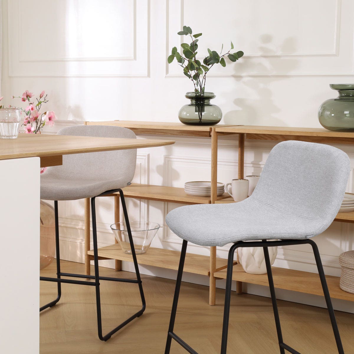 - De zachte stoffen bekleding zorgt voor een warme sfeer in de keuken