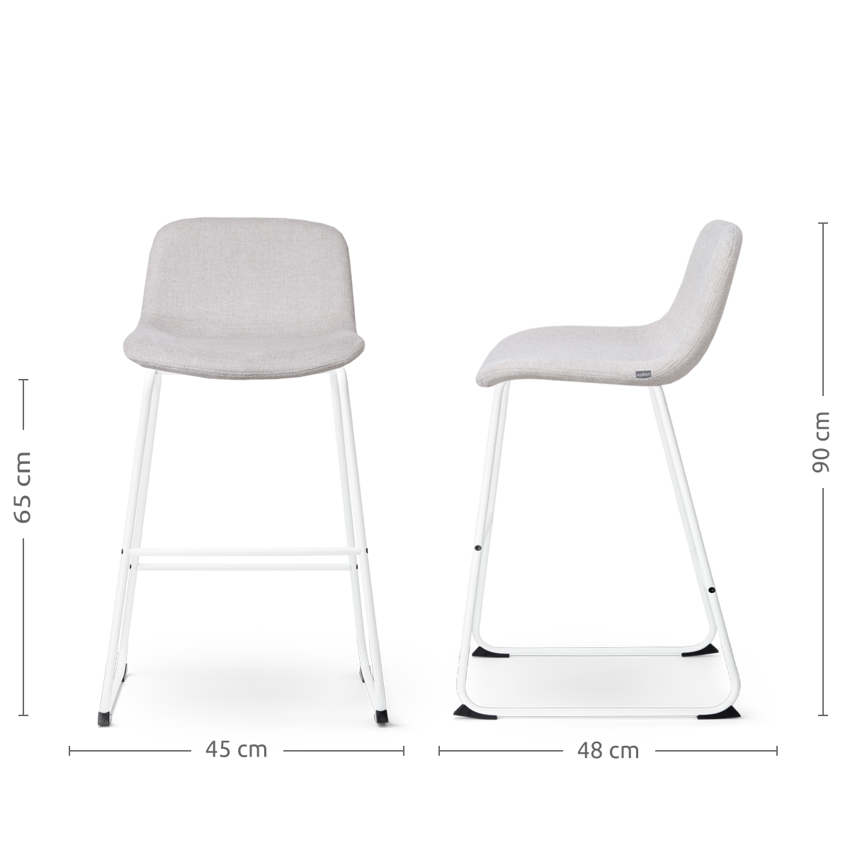 - Dankzij de zithoogte van 65 cm geschikt voor aan een kookeiland of keukenblad met een hoogte van ca. 88-95 cm