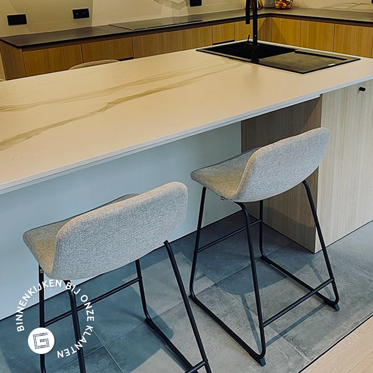 - De zachte stoffen bekleding zorgt voor een warme sfeer in de keuken
