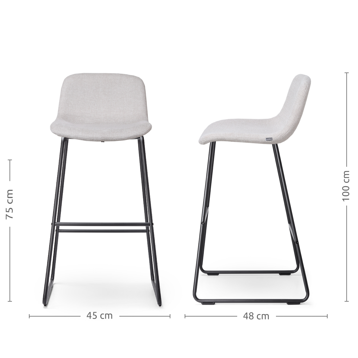 Deze barkruk combineert een strak en minimalistisch metalen onderstel met een gestoffeerde zitting. De zitting heeft een lage rugleuning, waardoor je een actieve zithouding hebt op deze barkruk en de kruk het uitzicht op de bar niet belemmert. Het design zonder armleuning maakt dat deze kruk onder elke tafel of bar past, en neemt ook nog eens minder ruimte in. De stijlvolle stoffen bekleding zorgt ervoor dat je lekker zacht zit en geeft de barkruk een warme uitstraling. Of je nu gaat voor een industriële look of een eigentijdse stijl in huis, de Nino-Mats barkruk is voor elk interieur een geschikte keuze. Dankzij de zithoogte van 76 cm past deze kruk perfect aan een bar of hoge eettafel. Heb je een lagere barkruk nodig? De Nino-Mats barkruk is ook verkrijgbaar in een variant voor aan het kookeiland.