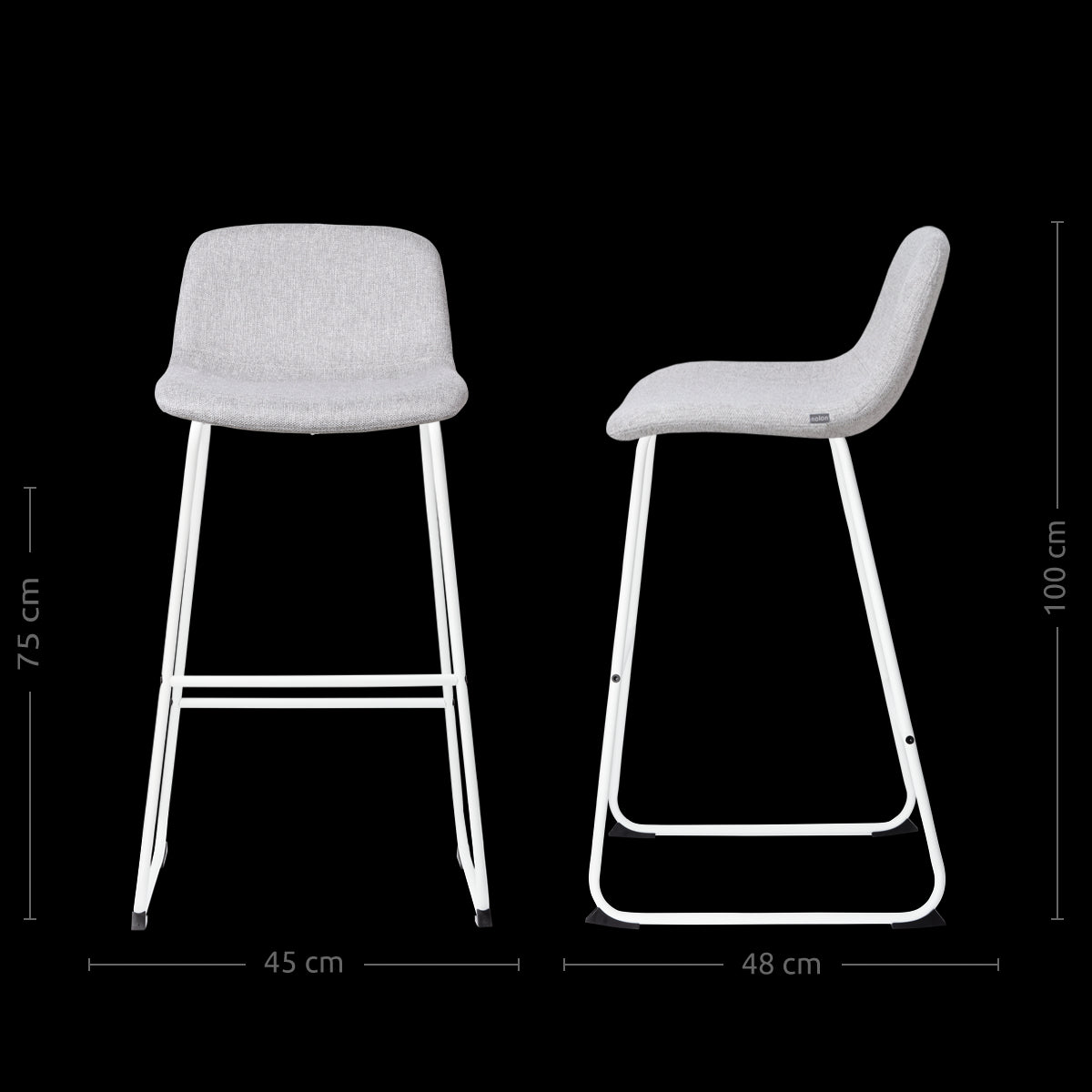 Deze barkruk combineert een strak en minimalistisch metalen onderstel met een gestoffeerde zitting. De zitting heeft een lage rugleuning, waardoor je een actieve zithouding hebt op deze barkruk en de kruk het uitzicht op de bar niet belemmert. Het design zonder armleuning maakt dat deze kruk onder elke tafel of bar past, en neemt ook nog eens minder ruimte in. De stijlvolle stoffen bekleding zorgt ervoor dat je lekker zacht zit en geeft de barkruk een warme uitstraling. Of je nu gaat voor een industriële look of een eigentijdse stijl in huis, de Nino-Mats barkruk is voor elk interieur een geschikte keuze. Dankzij de zithoogte van 76 cm past deze kruk perfect aan een bar of hoge eettafel. Heb je een lagere barkruk nodig? De Nino-Mats barkruk is ook verkrijgbaar in een variant voor aan het kookeiland.