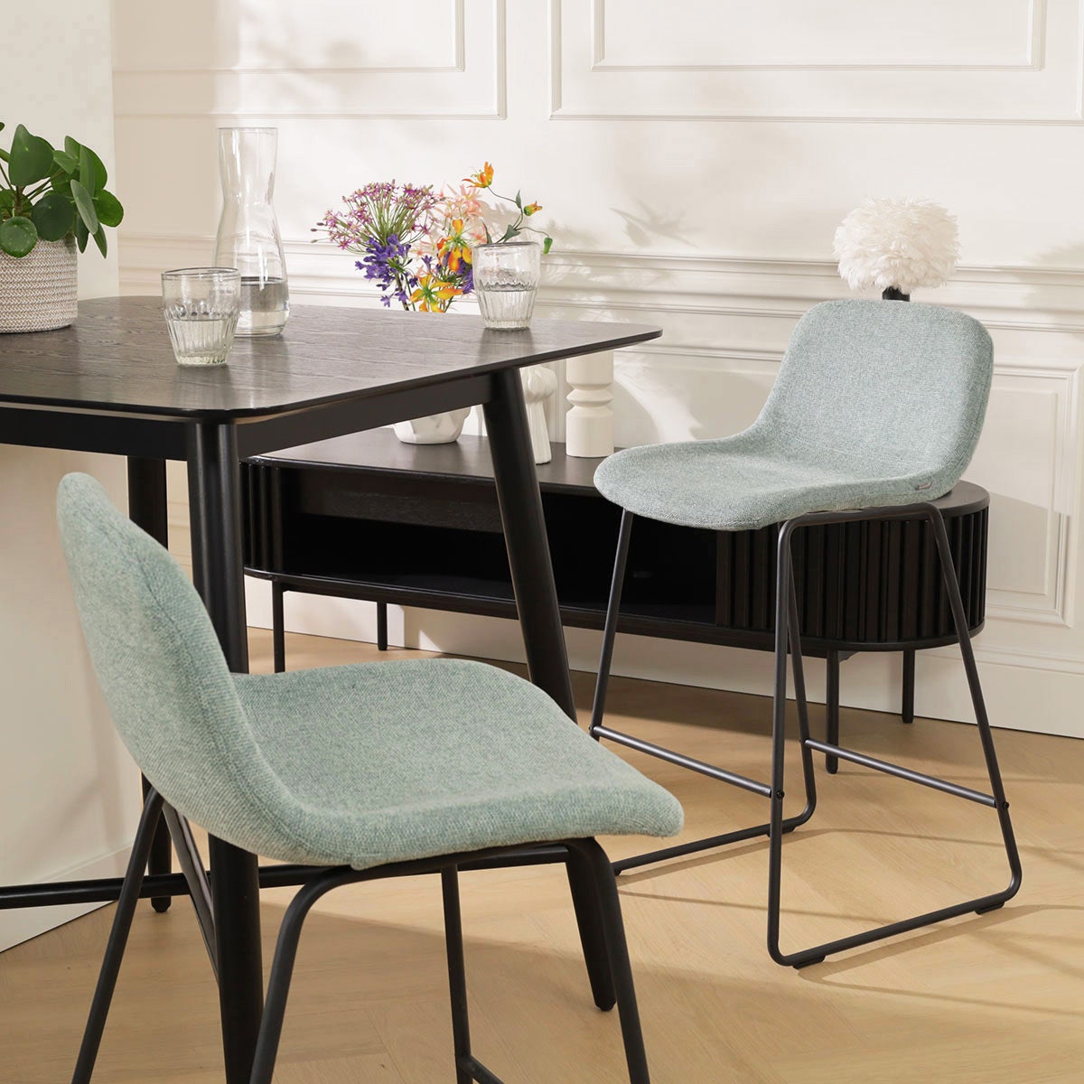 Deze tijdloze barkruk combineert een strak metalen onderstel met een gestoffeerde zitting. De zitting heeft een lage rugleuning, waardoor je een actieve zithouding hebt op deze barkruk. De stoffen bekleding zorgt ervoor dat je lekker zacht zit. Het moderne metalen onderstel met voetensteun biedt stabiliteit en geeft de barkruk een moderne uitstraling. Of je nu gaat voor een industriële look of een eigentijdse stijl in huis, de Nino-Mats barkruk is voor elk interieur een geschikte keuze. Dankzij de zithoogte van 65 cm past deze kruk perfect aan het kookeiland. Heb je een hogere barkruk nodig? De Nino-Mats barkruk is ook in een hogere uitvoering verkrijgbaar.