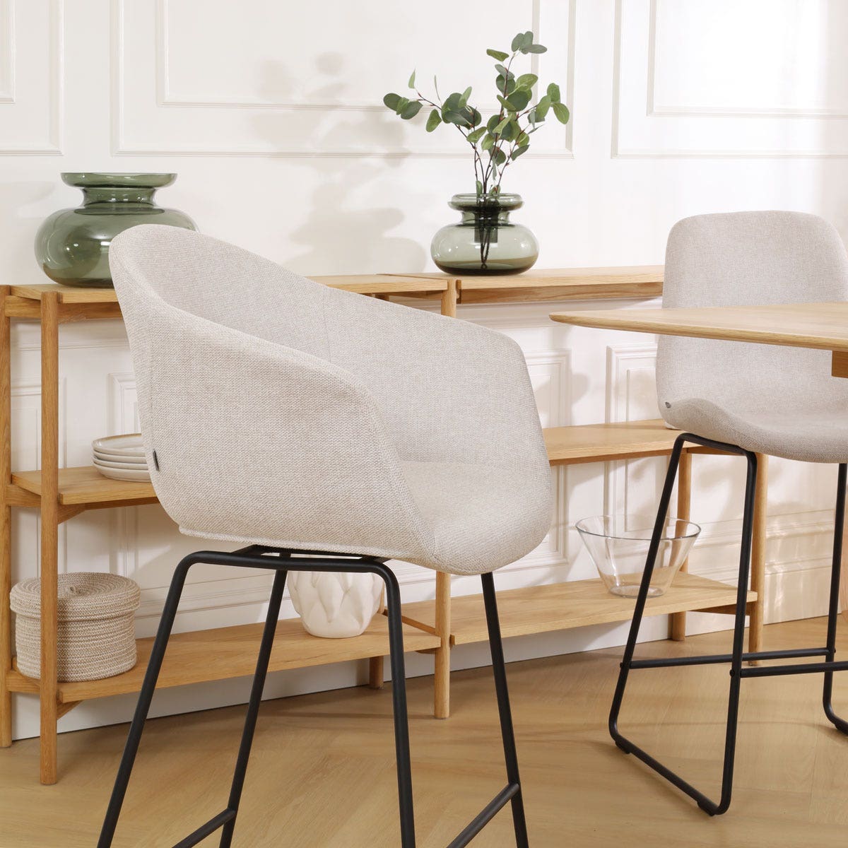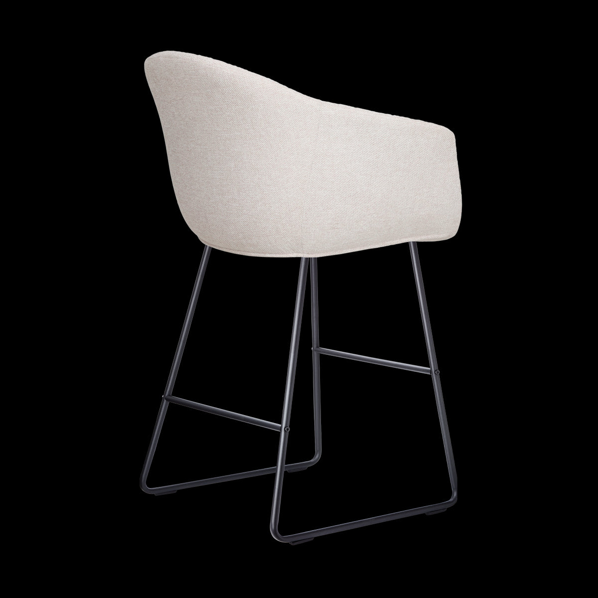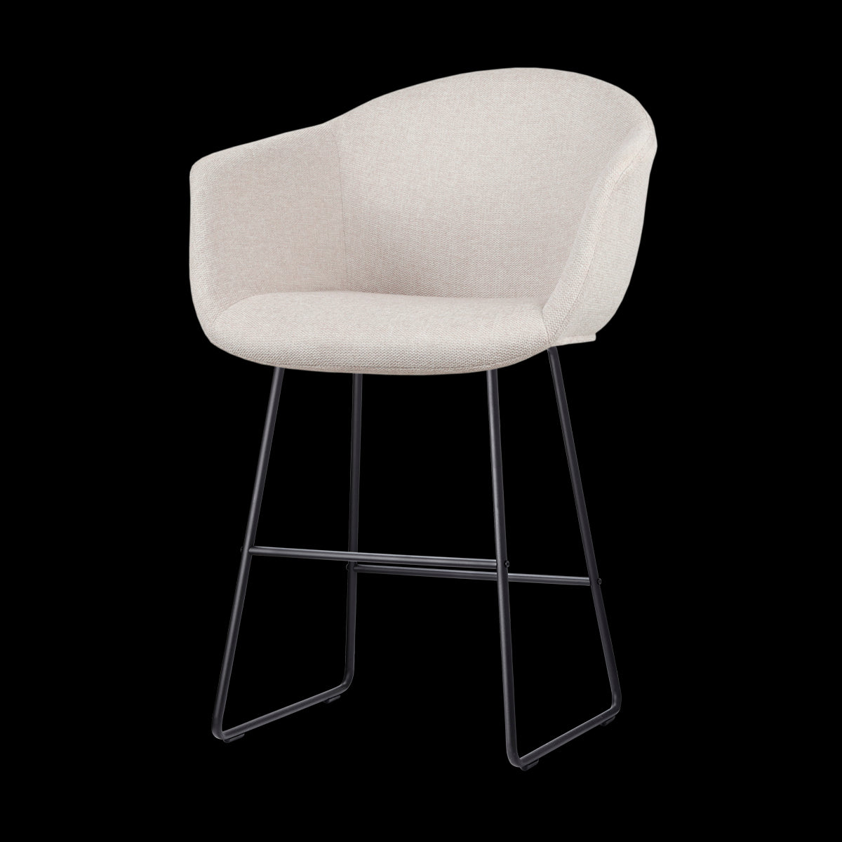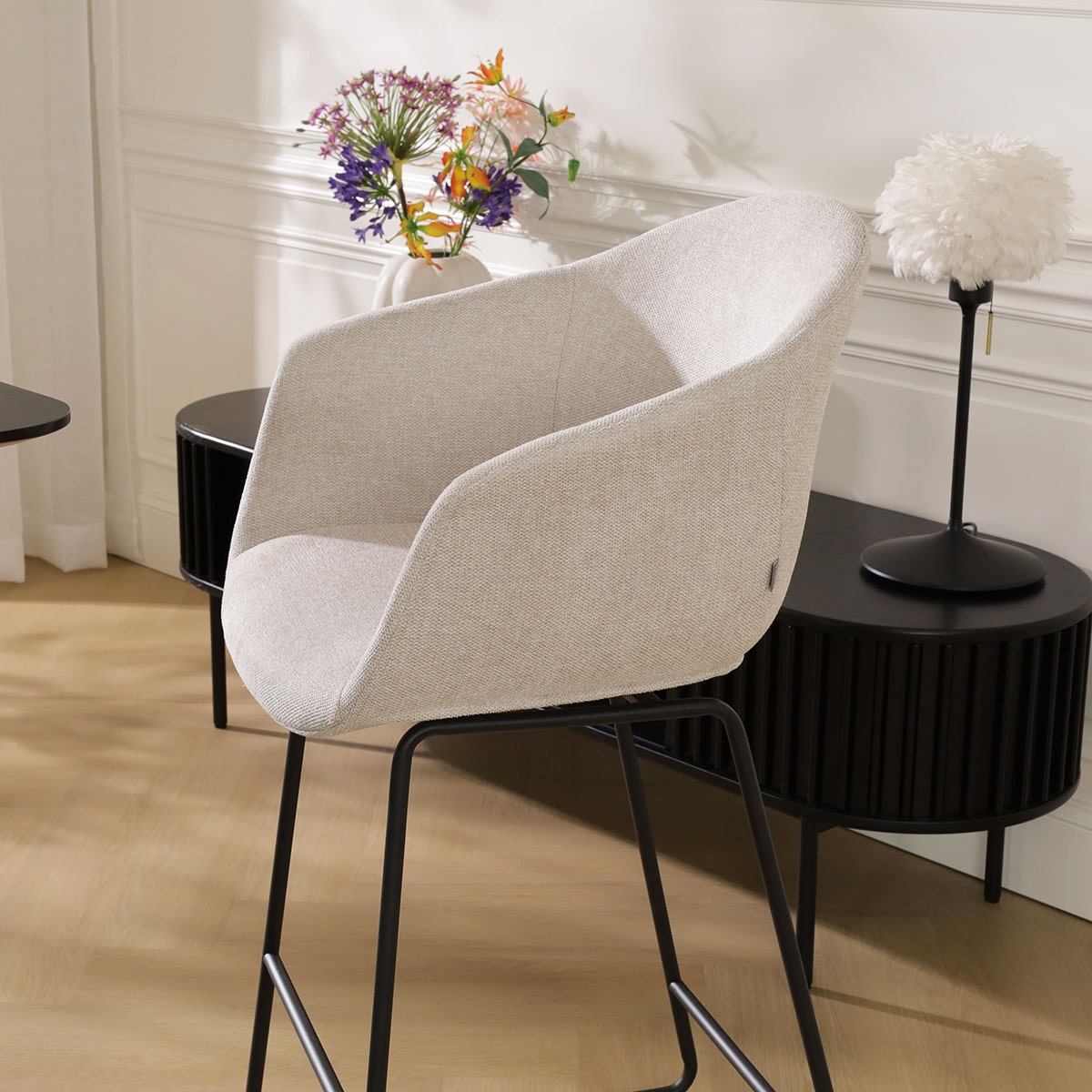 Deze kookeiland barkruk combineert een zachte stoffen zitting met een modern metalen onderstel en is daarmee een stijlvolle blikvanger in de keuken. Het metalen frame heeft een minimalistische en luchtige uitstraling. Dankzij de voetsteun op het frame heb je de keuze om je benen losjes te laten hangen of stevig neer te zetten. De ronde kuipzitting is ontworpen met armleuningen en een zachte stoffen bekleding om extra comfort te bieden terwijl je aan de bar zit. Met de zes verschillende kleuren stof kan je deze stijlvolle barkruk helemaal aan jouw interieur aanpassen, en ook het onderstel is in twee kleuren verkrijgbaar. Met een zithoogte van 65 cm is deze barkruk met armleuning geschikt voor aan een kookeiland. Zie jij jezelf al zitten met een kopje koffie?
