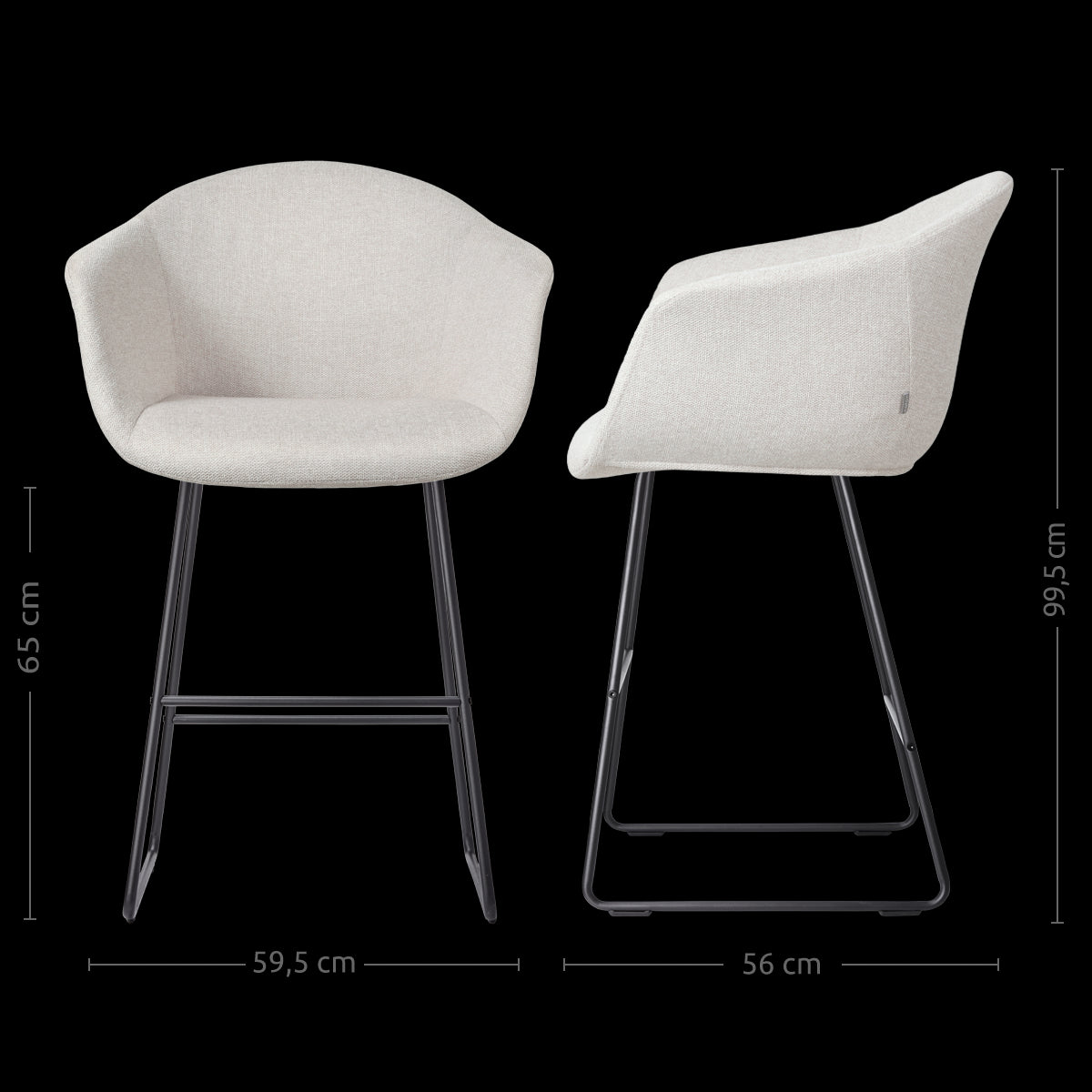 - Dankzij de zithoogte van 65 cm geschikt voor aan een kookeiland of keukenblad met een hoogte van ca. 88-95 cm
