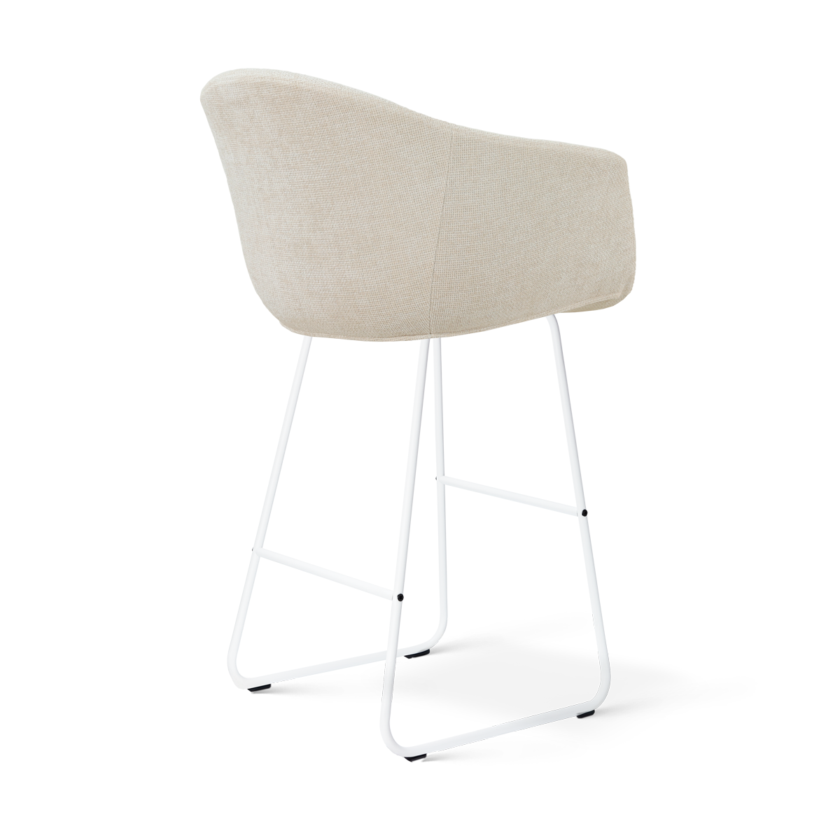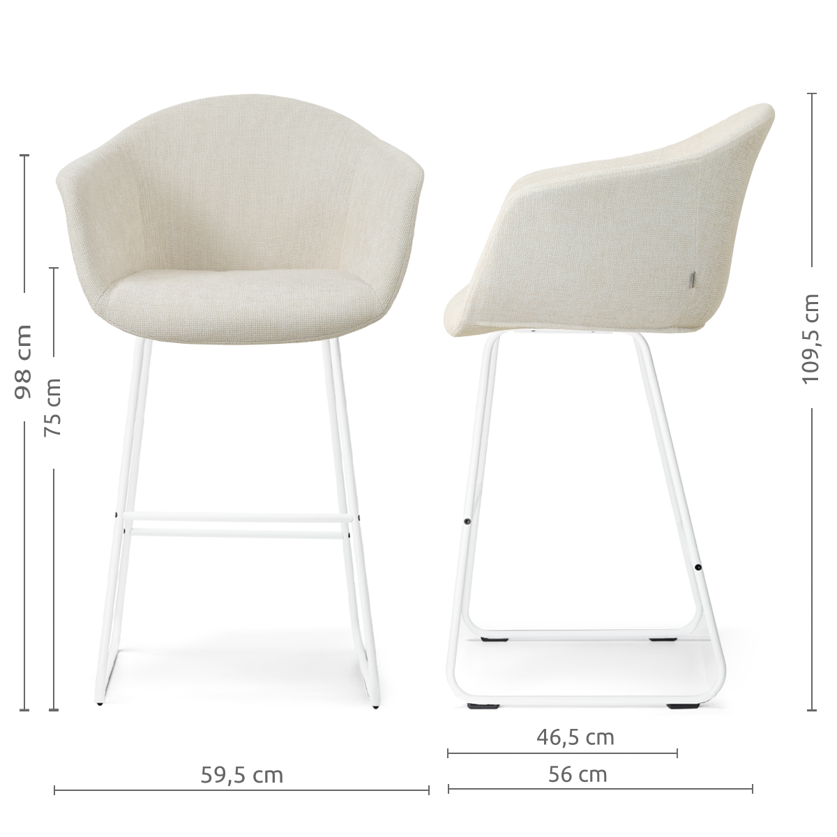 De Nino-Otis barkruk in cottonbeige met wit onderstel combineert zachte, comfortabele stoffering met een frisse, Scandinavische look. De oplopende armleuningen en ergonomische zitting bieden optimale steun, terwijl de stevige voetsteun extra gemak geeft. Ideaal voor hoge tafels of bartafels, en een stijlvolle toevoeging aan je keuken of bar
