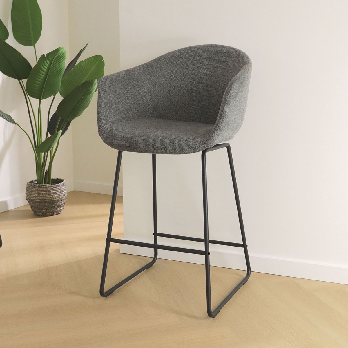 Deze kookeiland barkruk combineert een zachte stoffen zitting met een modern metalen onderstel en is daarmee een stijlvolle blikvanger in de keuken. Het metalen frame heeft een minimalistische en luchtige uitstraling. Dankzij de voetsteun op het frame heb je de keuze om je benen losjes te laten hangen of stevig neer te zetten. De ronde kuipzitting is ontworpen met armleuningen en een zachte stoffen bekleding om extra comfort te bieden terwijl je aan de bar zit. Met de zes verschillende kleuren stof kan je deze stijlvolle barkruk helemaal aan jouw interieur aanpassen, en ook het onderstel is in twee kleuren verkrijgbaar. Met een zithoogte van 65 cm is deze barkruk met armleuning geschikt voor aan een kookeiland. Zie jij jezelf al zitten met een kopje koffie?