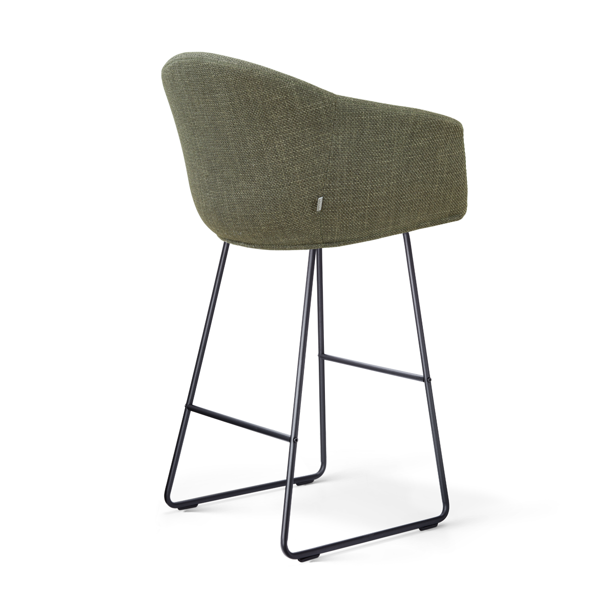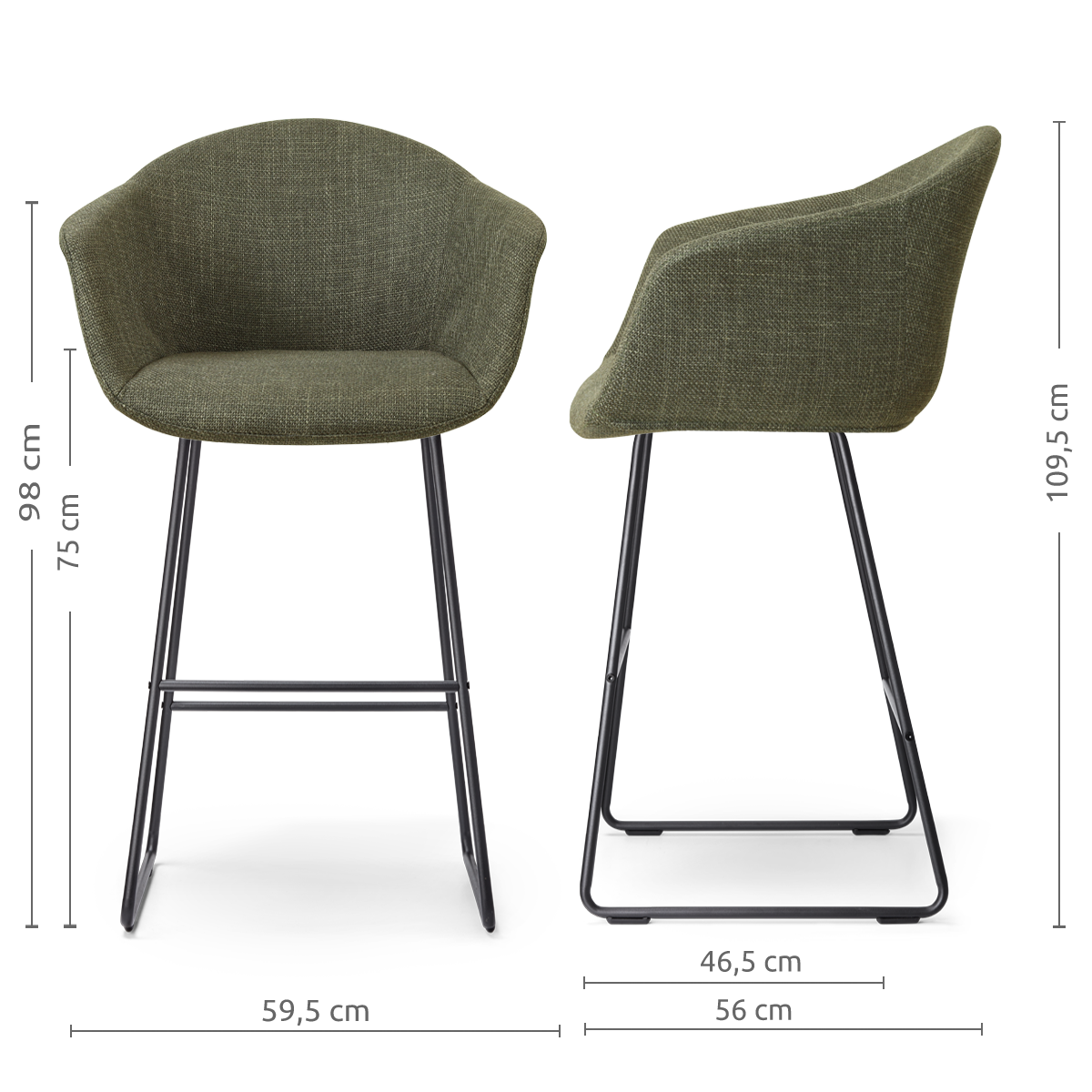 De Nino-Otis barkruk in forestgroen met zwarte poten combineert elegantie met comfort. De zachte stoffering, oplopende armleuningen en stevige voetsteun zorgen voor een ergonomische zit, terwijl het zwarte frame een moderne, stoere touch geeft aan je keuken of bar.