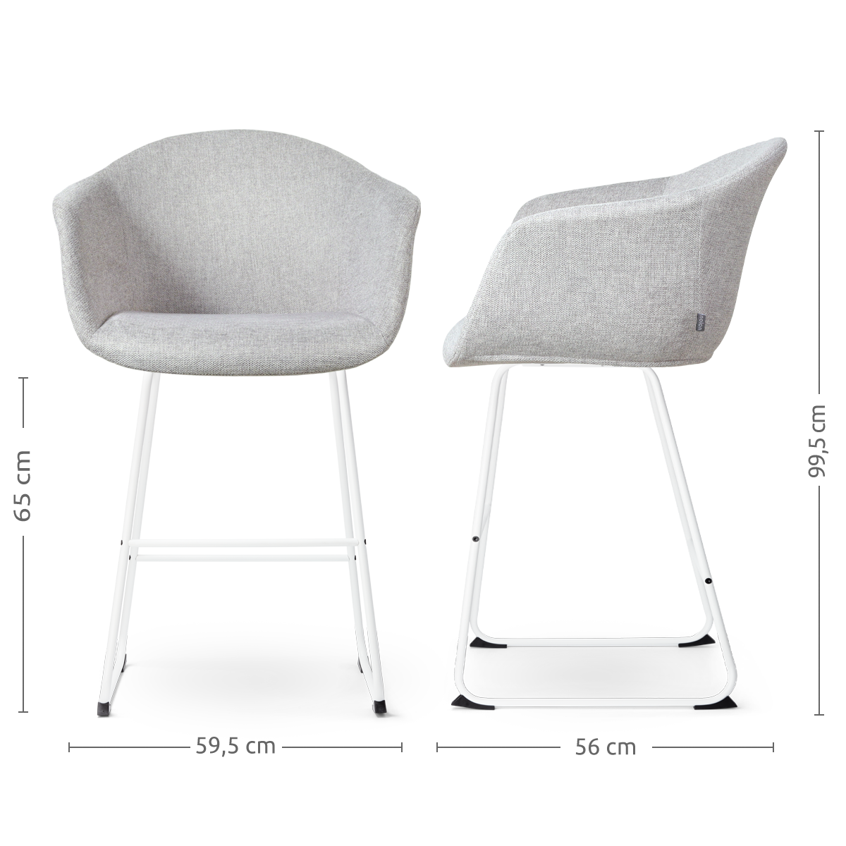 - Dankzij de zithoogte van 65 cm geschikt voor aan een kookeiland of keukenblad met een hoogte van ca. 88-95 cm